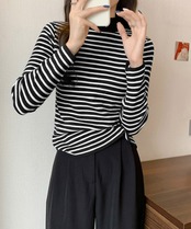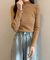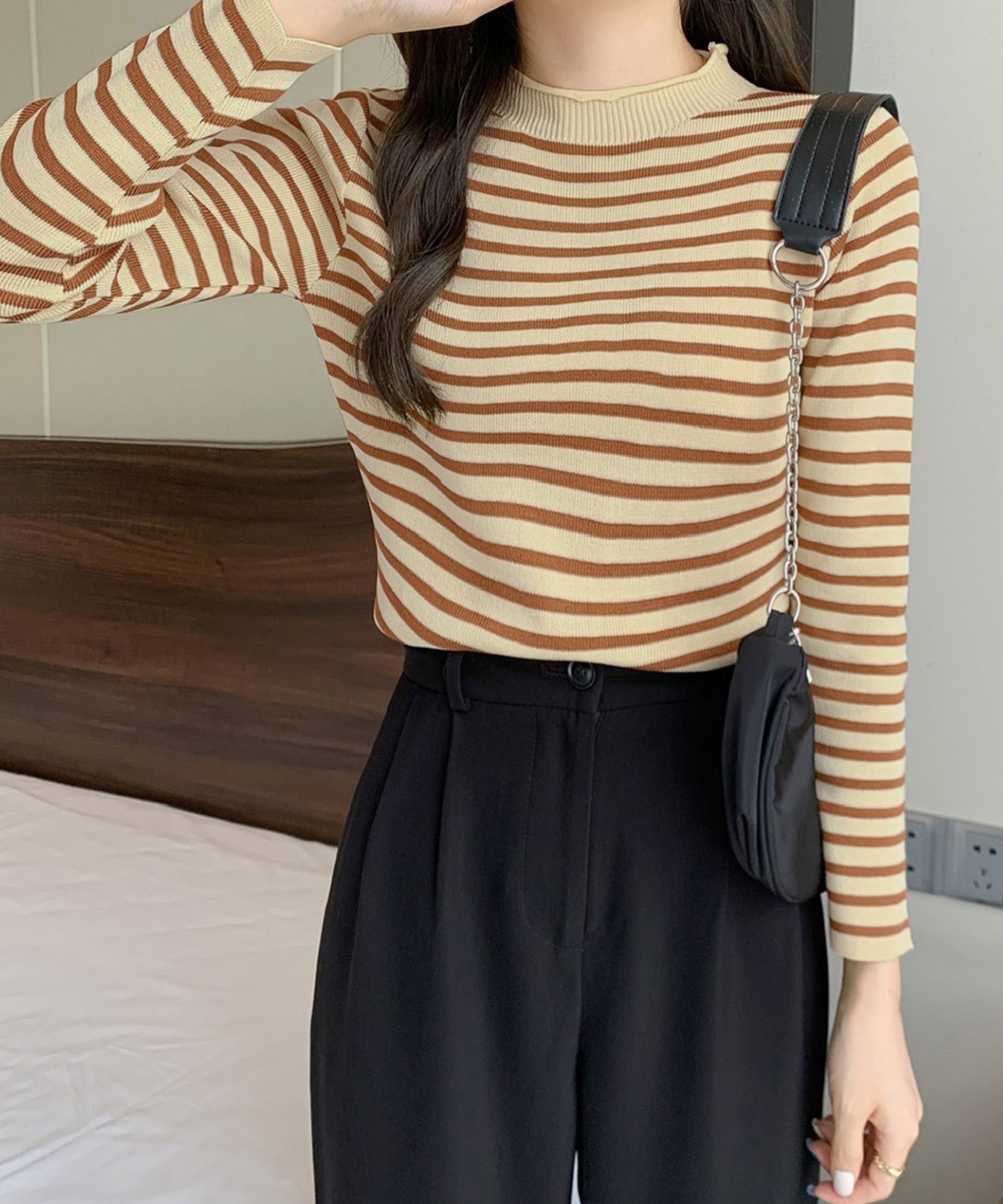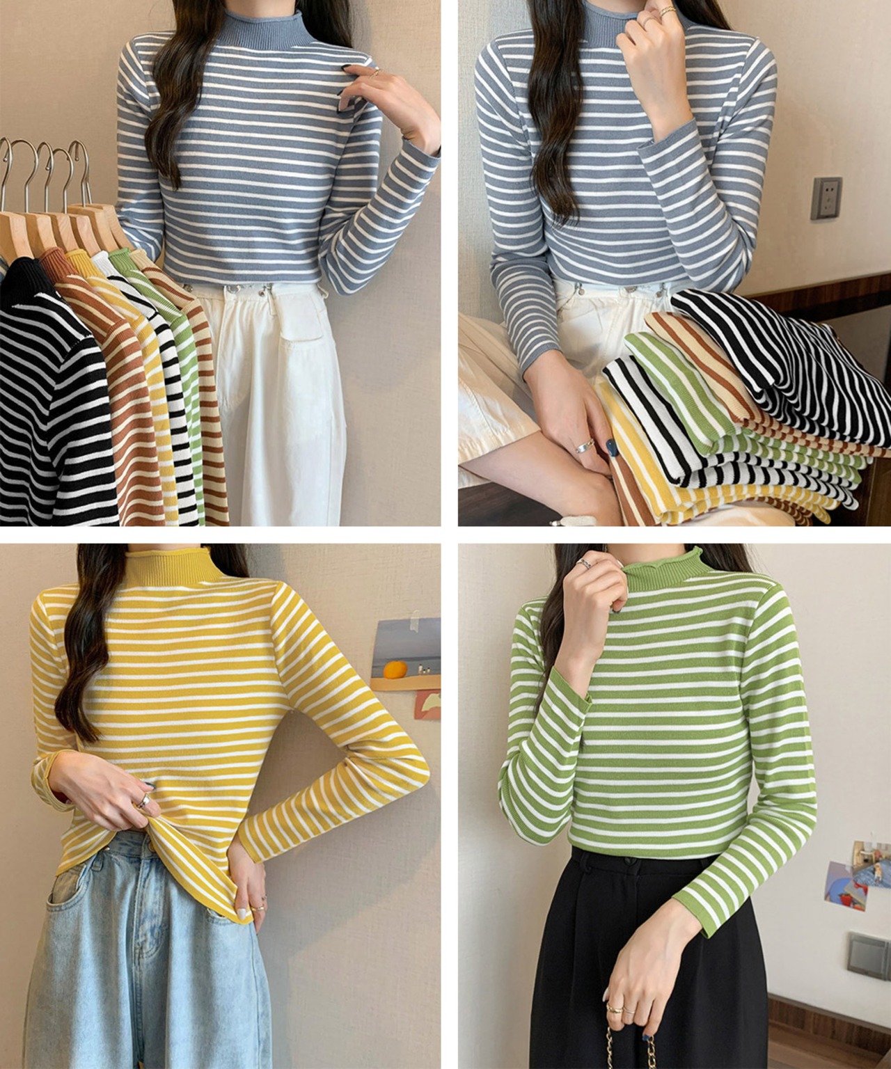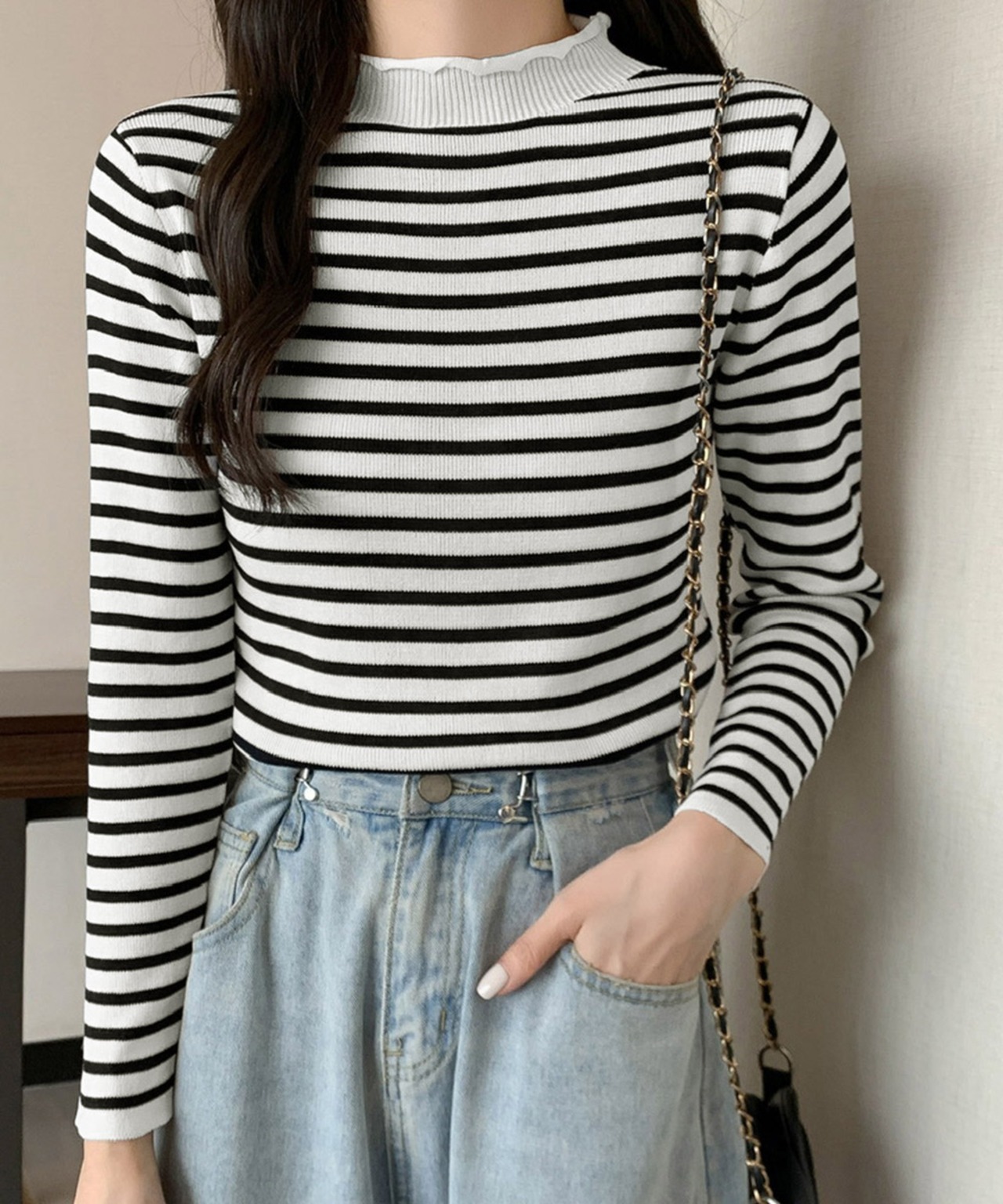 【日本倉庫からの発送】 ボーダー柄ニットロールネックプルオーバー #[84WANJIA-009_12600]【送料込み】【251017】