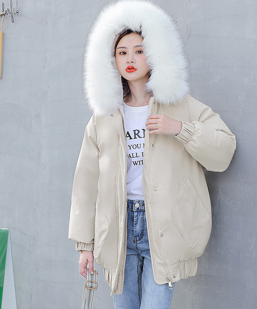 レディース ゆったりフーディーコート 中綿ブルゾン ファーフード付き 防風中綿コート 厚手暖かいアウター 体型カバー冬服