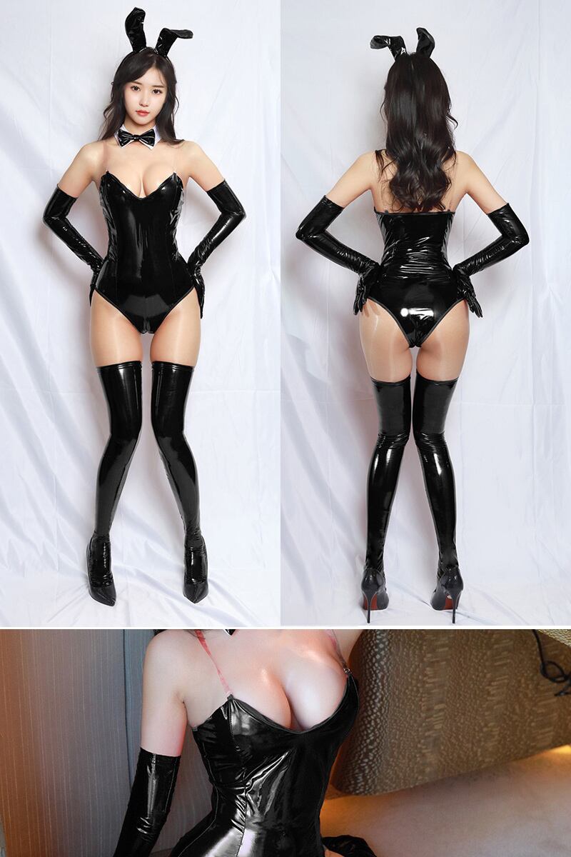 【即日出荷】2色 レザー風 バニーガール レオタード コスプレ衣装【 #[4226_18000]】【送料込み】【250923】