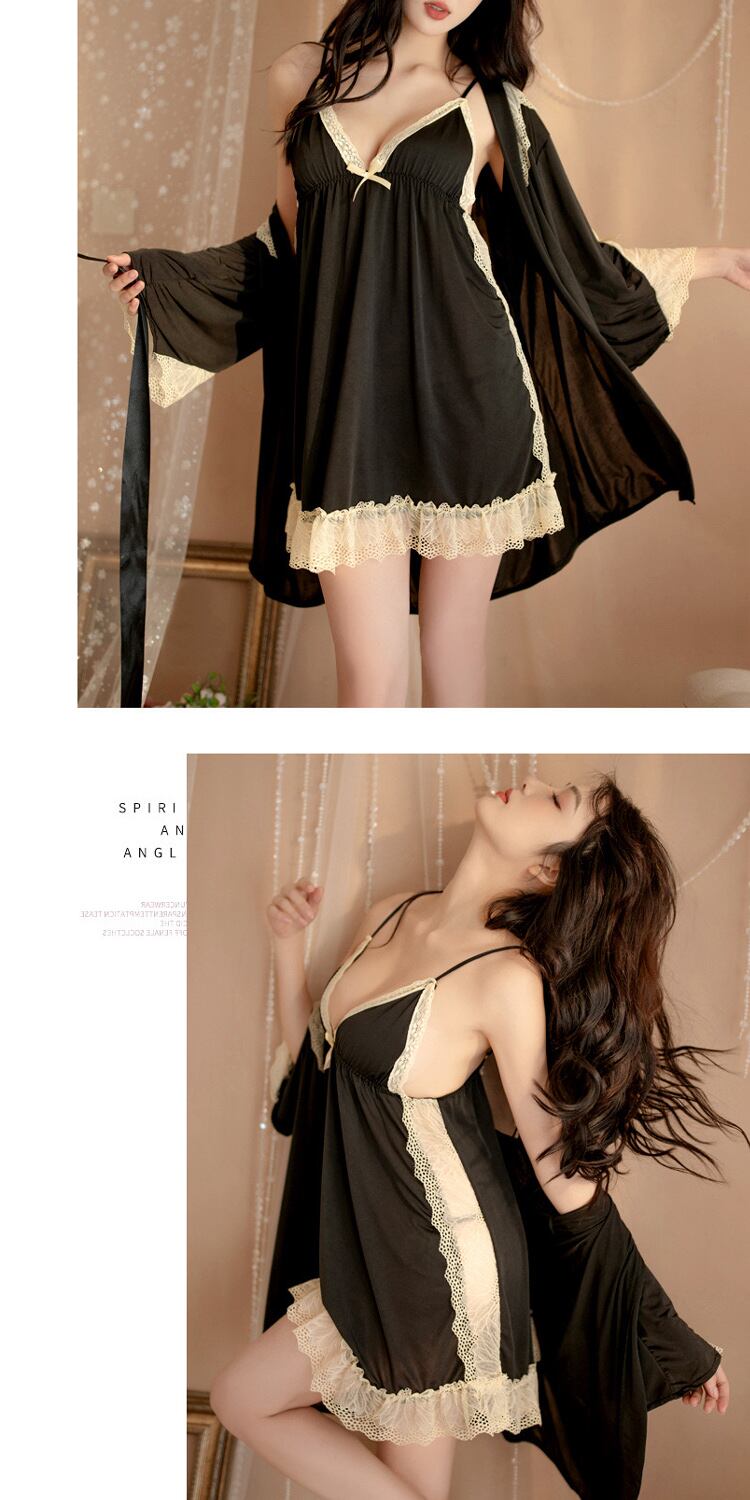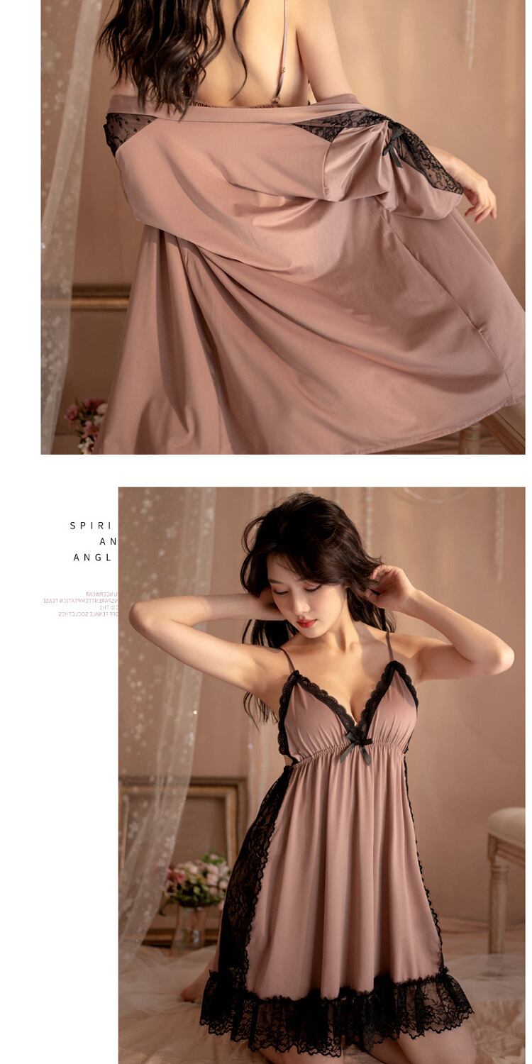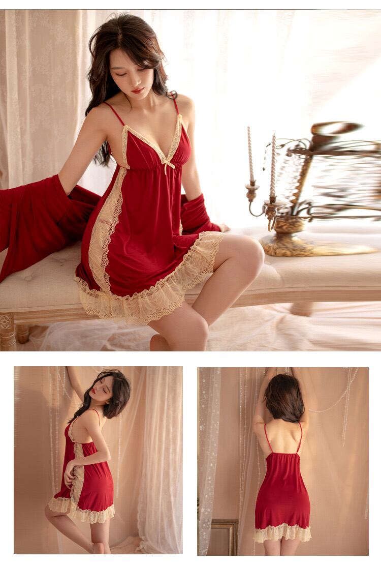 セクシーガウン+キャミソール+Tバックショーツ+腰紐
