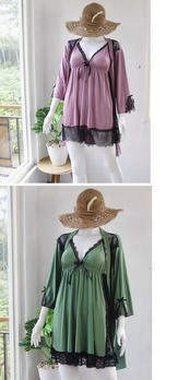 6色を選べるエレガントなナイトウェアセット!!肌触りが良く、さらりとした生地の前開きロングガウンとゆったりめのスリップ