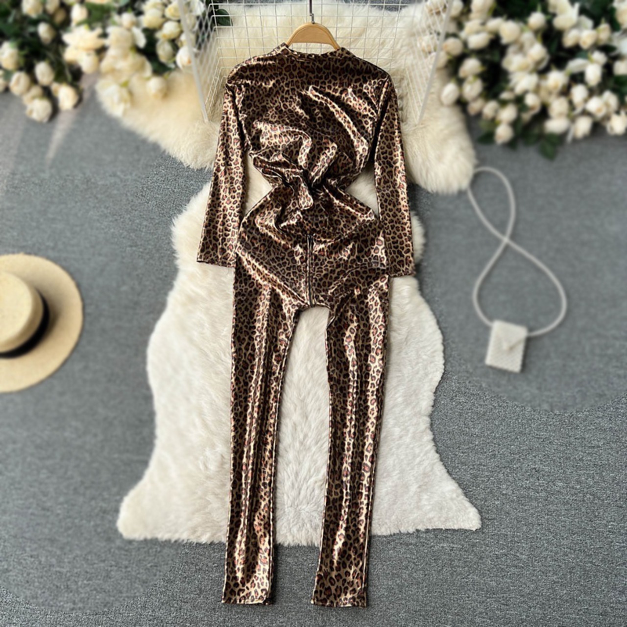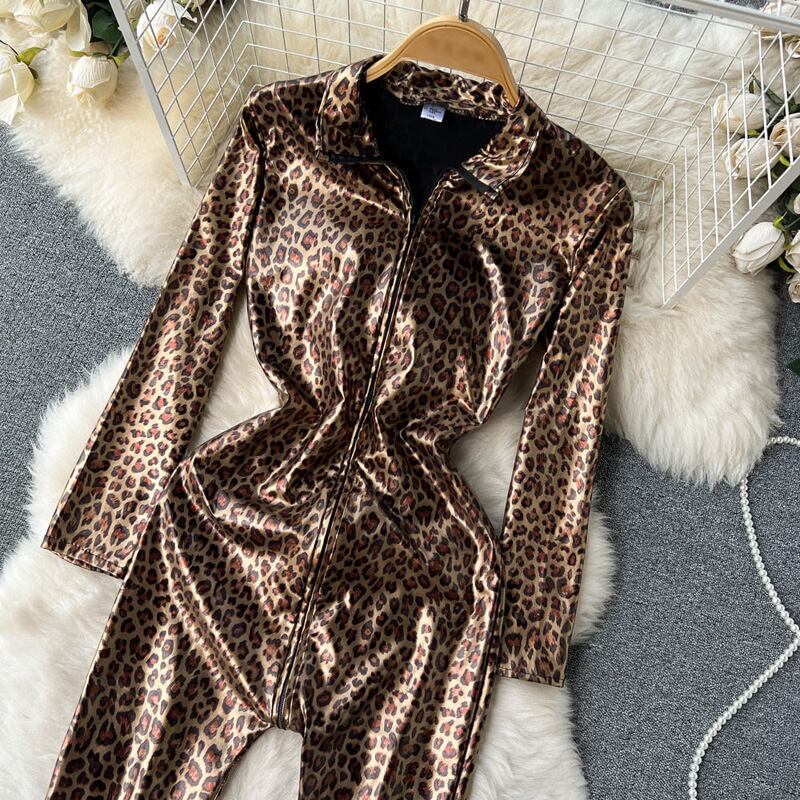 【即納】豹柄 長袖 エナメル風 ボンテージ 全身タイツ スーツ コスプレ衣装【 #[4653_18000]】【送料込み】【251210】
