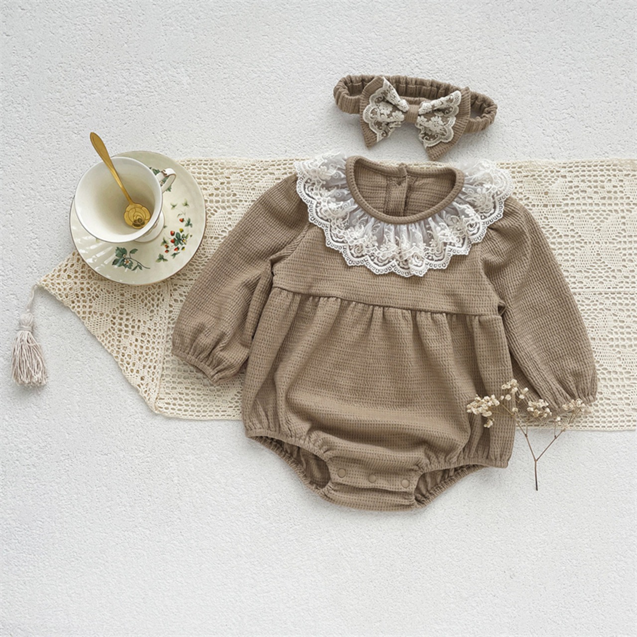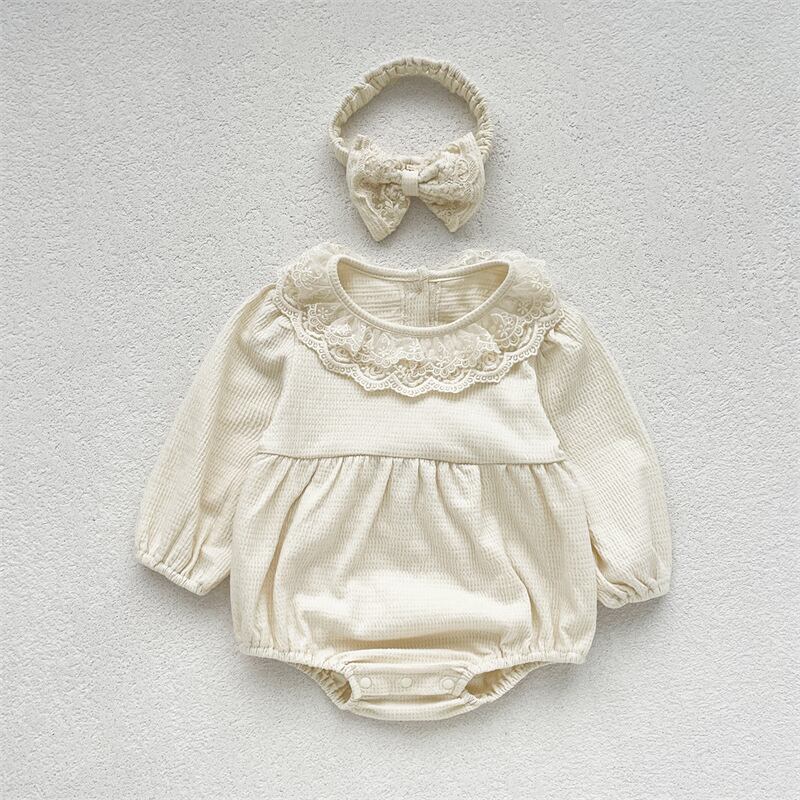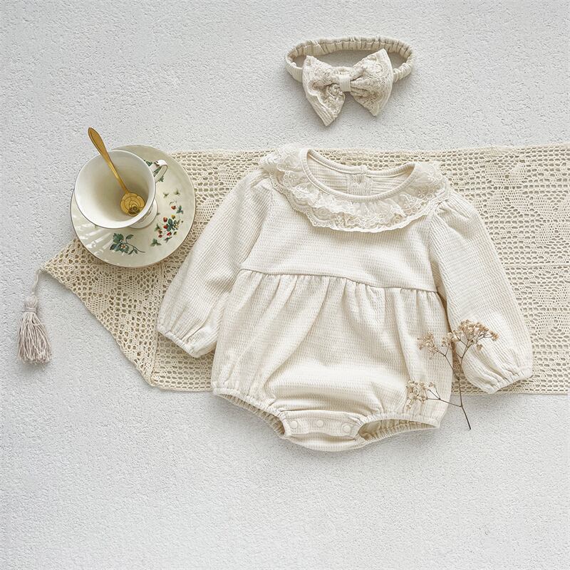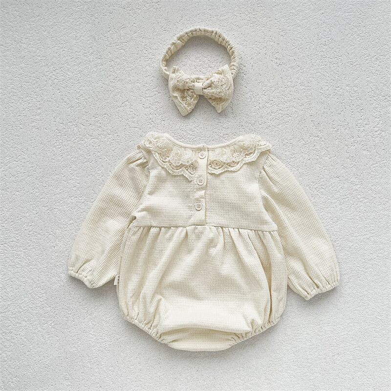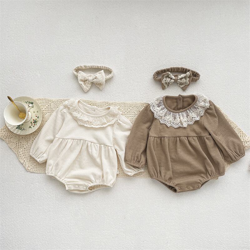 【海外からの取り寄せ】ins 秋新作 ベビー服 ワッフル ロンパース レース襟 女の子 可愛い ヘアバンド付き おしゃれ #[ckd1094234_17500]【送料込み】【251016】