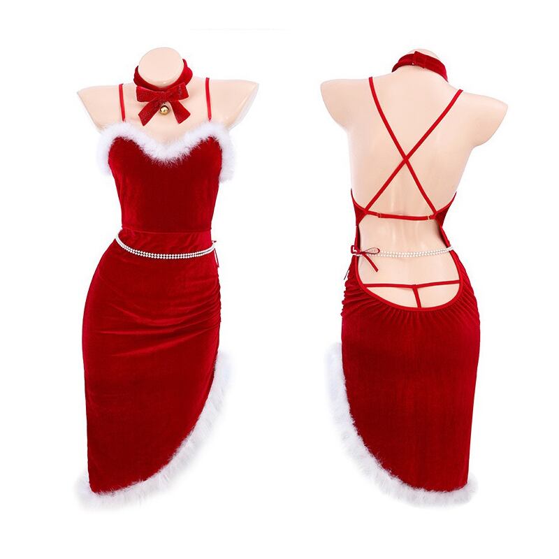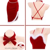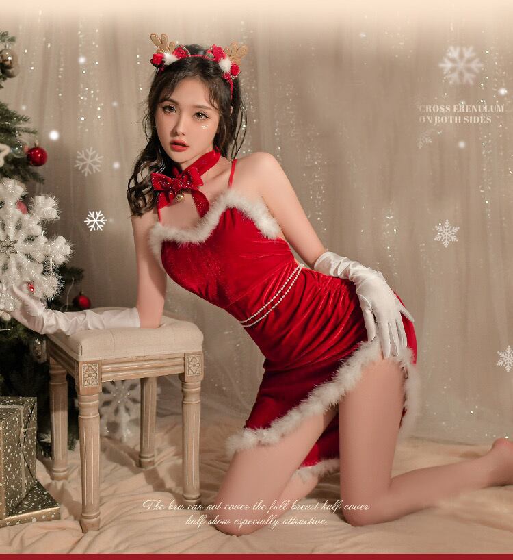 トナカイカチューシャ、首輪、グローブ、腰飾り、ドレス、Tバック