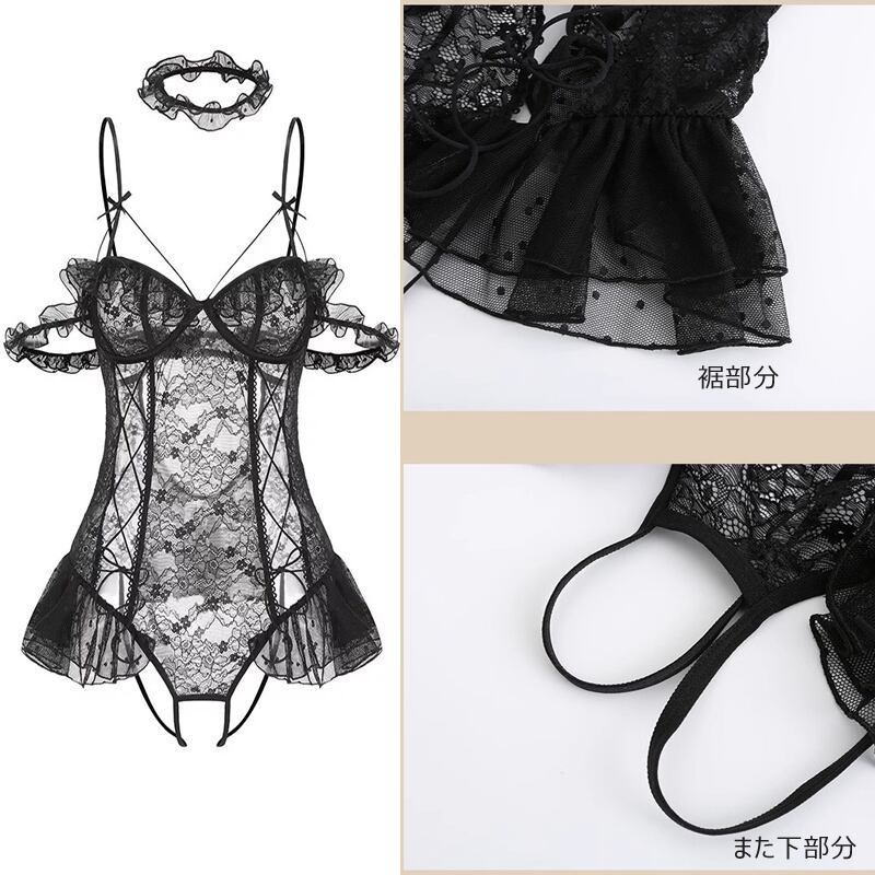 【即納】首輪付き ベビードール&Tバック セクシーランジェリー【8207】 #[1922/06/20_12000]【送料込み】【250914】