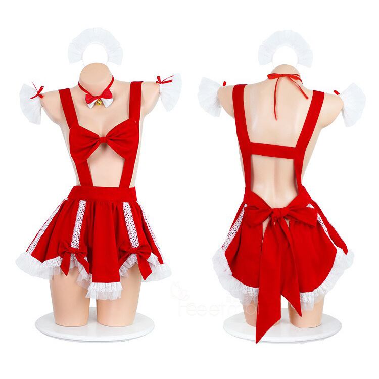 セット内容:カチューシャ、チョーカー、ワンピース、フロント蝶リボン、ガーターリング*2、Tバック