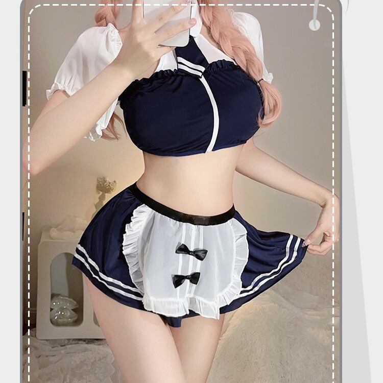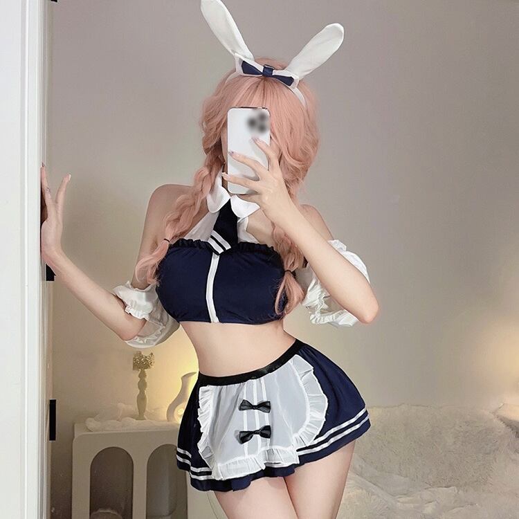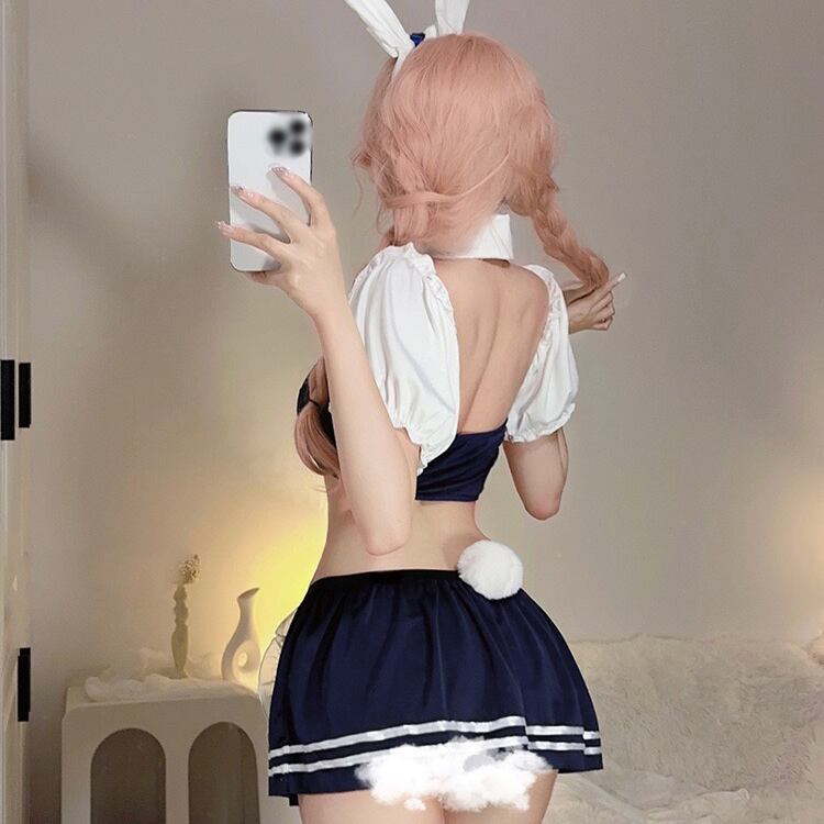 【即納】紺白 上下セット せーーらー服 バニーガール コスプレ衣装【4228】 #[1911/07/29_16000]【送料込み】【251103】