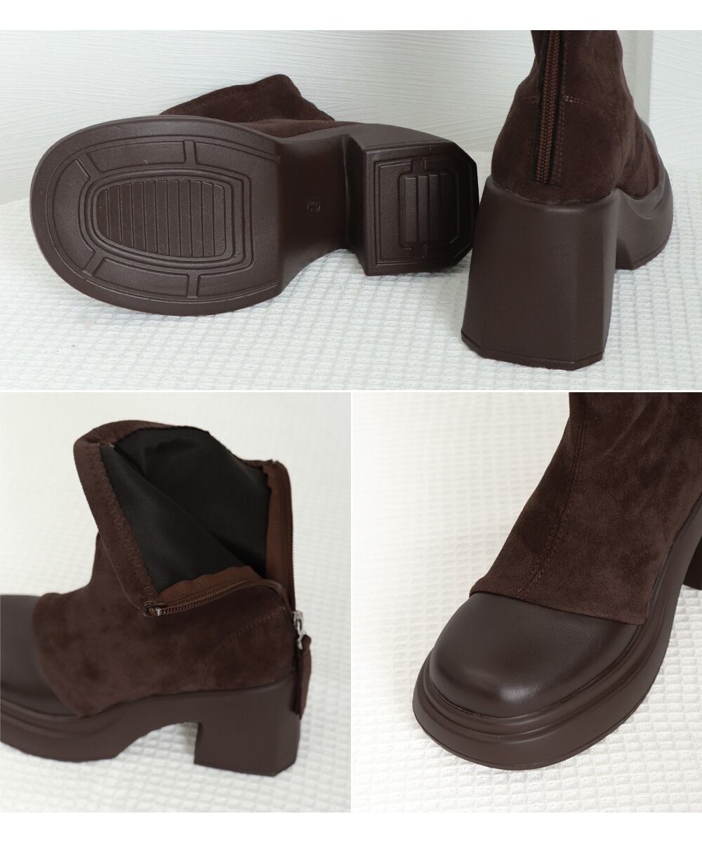 ダークブラウンとブラック2色展開の厚底ショートブーツ。