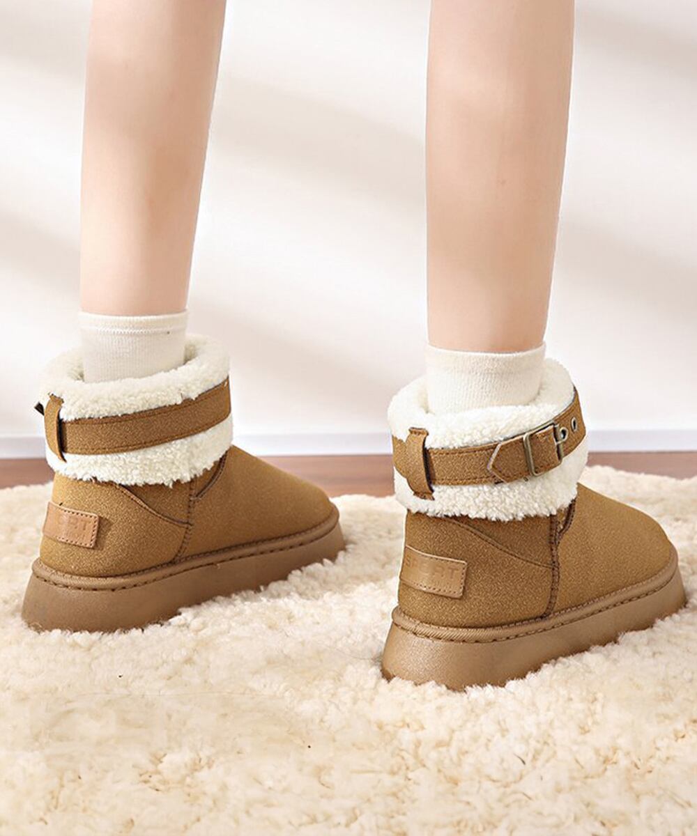 寒い季節にぴったりで、足元をしっかり保温し、暖かく快適な裏起毛フェイクムートンブーツ。