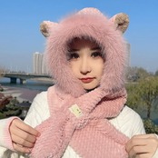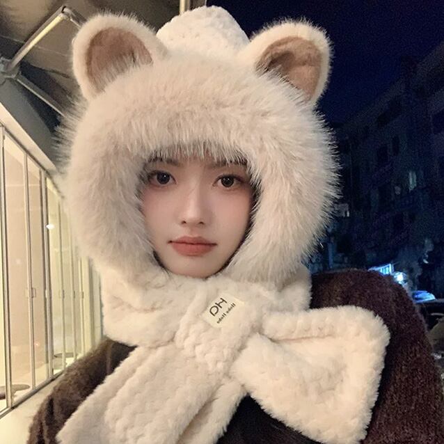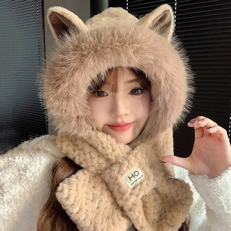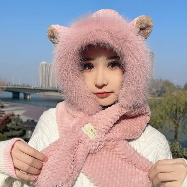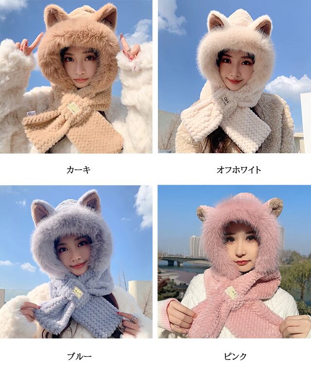 【海外からの取り寄せ】 新作 レディース 帽子 ニットマフラー 小顔効果 一体型 かわいい 防寒 保温 キツネ耳 ねこ耳 #[hat406_7800]【送料込み】【250510】