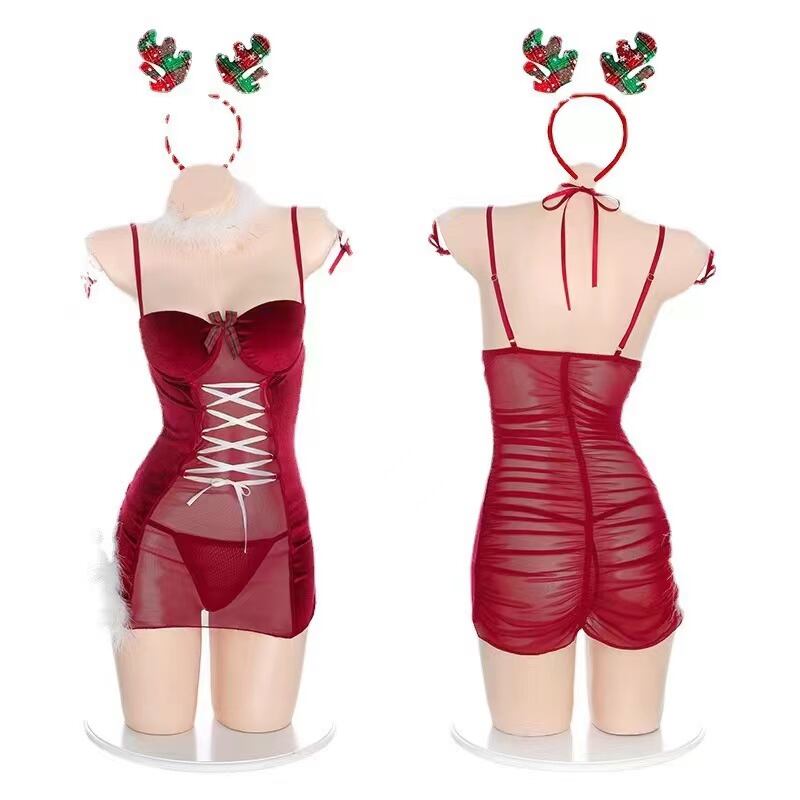 サンタカチューシャ、首輪、腕飾り、ベビードール、Tバックショーツ