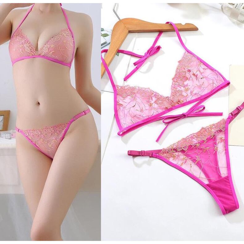 このノンワイヤーブラジャーとショーツのセットは、エレガントな刺繍とシースルー素材を使用しており、洗練された魅力を演出します。ホルターネックデザインとバック結びタイプにより、サイズ調整が可能で、多くの方にフィットする設計となっています。透け感のある、超軽薄な素材を採用しているため、着心地が軽やかで、長時間の着用でも快適です。