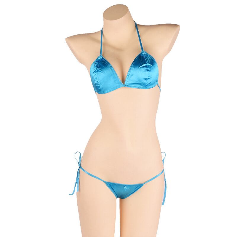 このブラ&ショーツセットは、ホルターネックと紐パンのデザインで、上下ともに結びタイプとなっているため、自分の体にぴったりとフィットさせることができます。