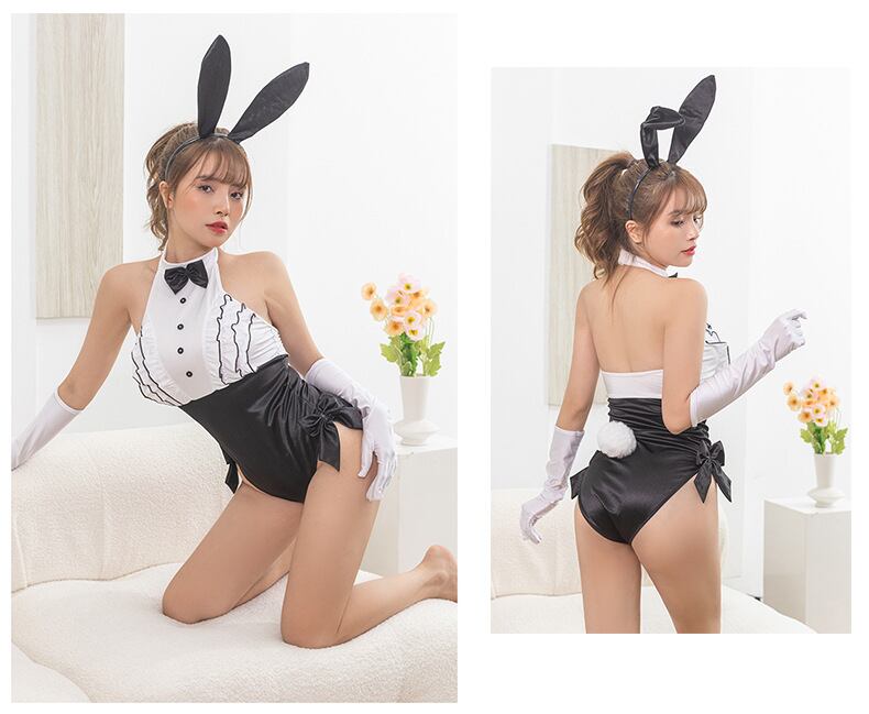 【即日出荷】黒白 サイドリボン バニーガール レオタード コスプレ衣装【 #[4164_18000]】【送料込み】【251123】