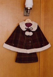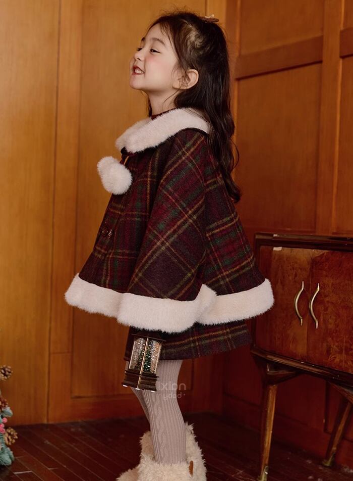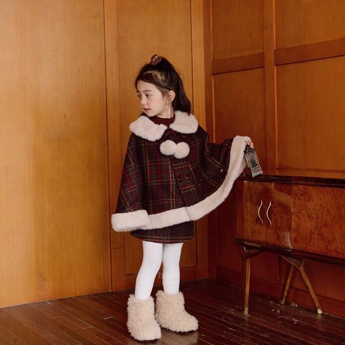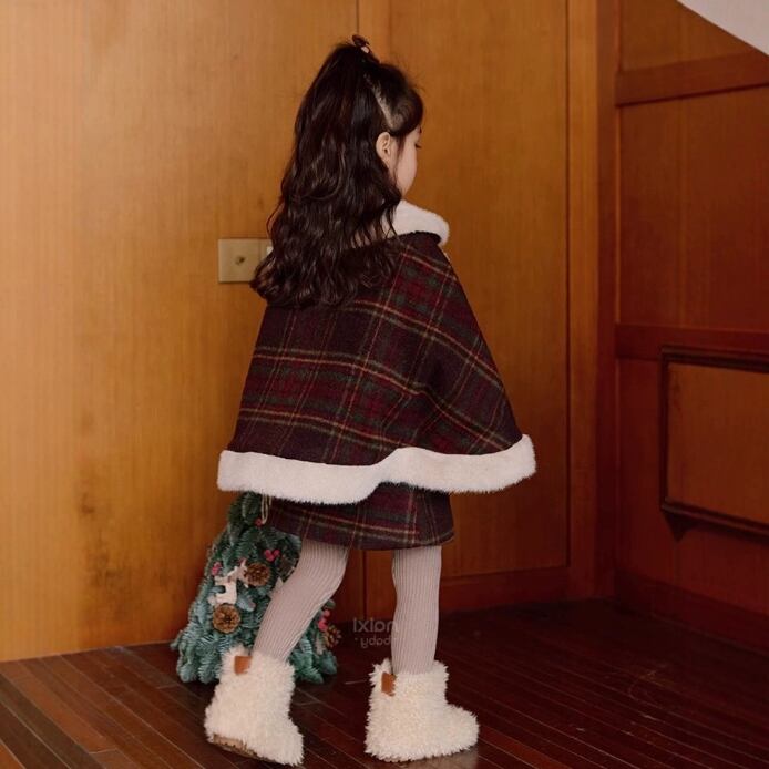 赤チェック柄 マント 可愛い 子供 韓国スタイル トレンディ