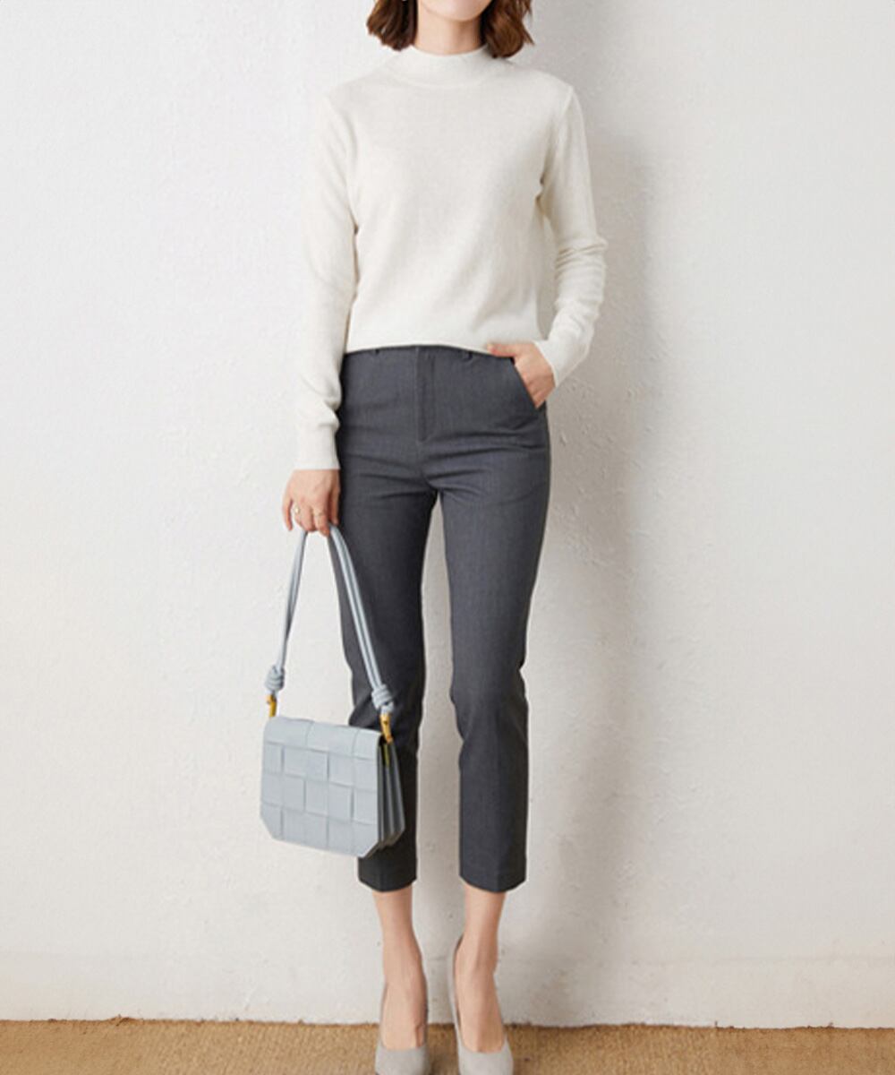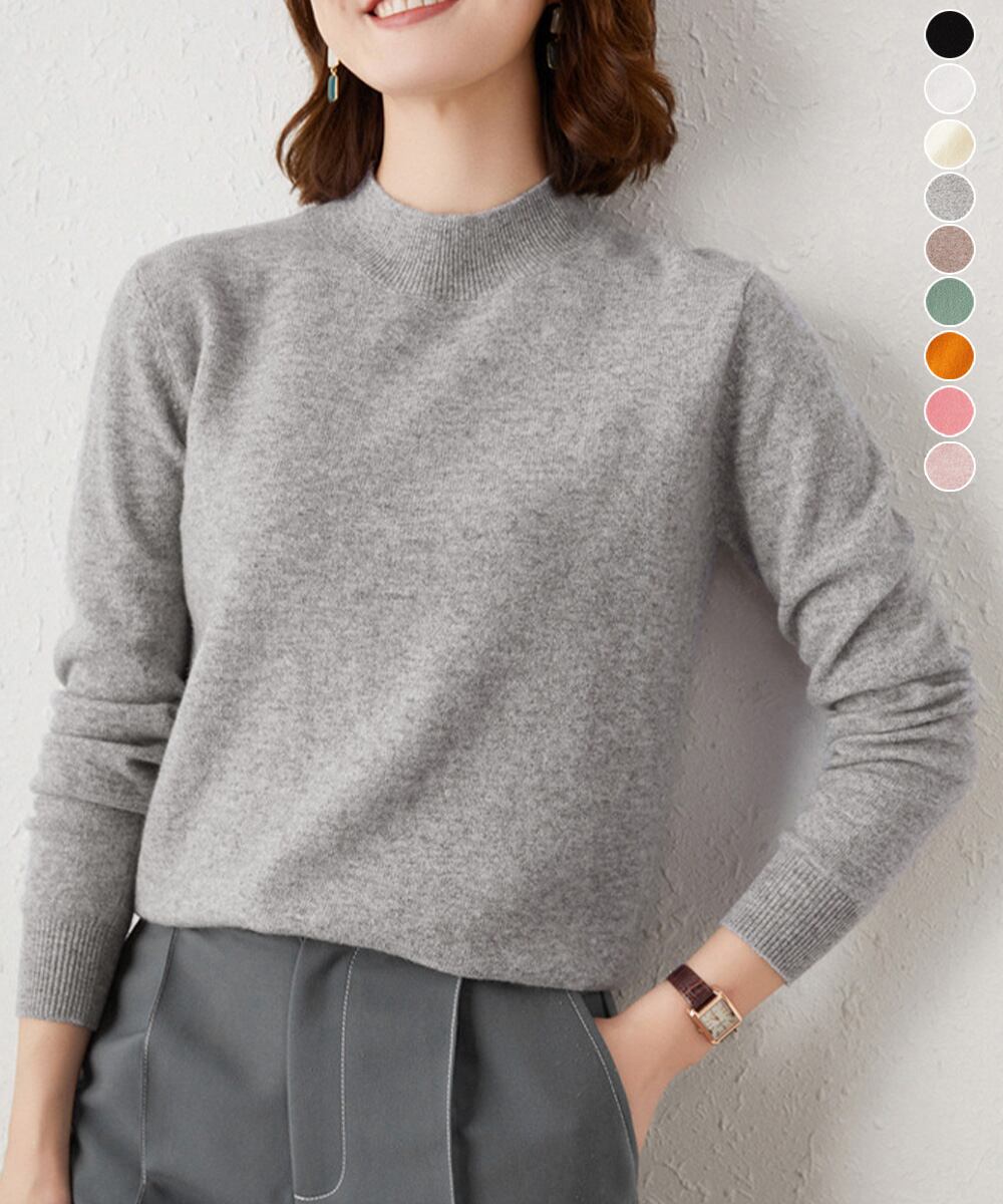 モックネックニット オフィスカジュアル 着やせプルオーバー