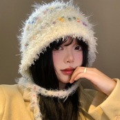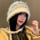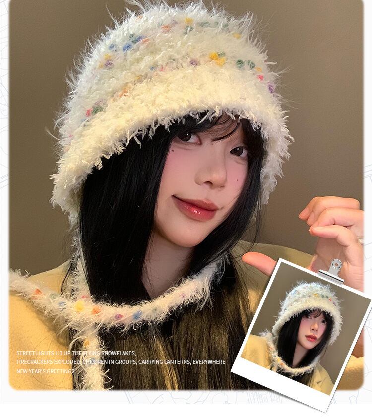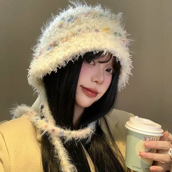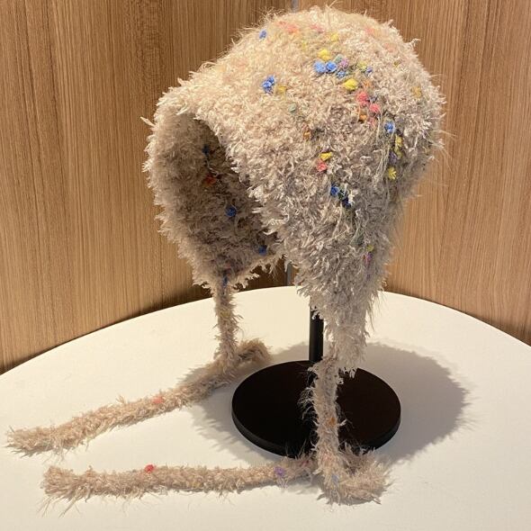 【海外からの取り寄せ】2024秋冬新作 レディース 帽子 メランジシャギー ひも付帽子 小顔効果 伸縮 かわいい 防寒 保温 手編み #[hat407_9800]【送料込み】【250510】