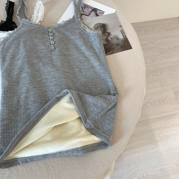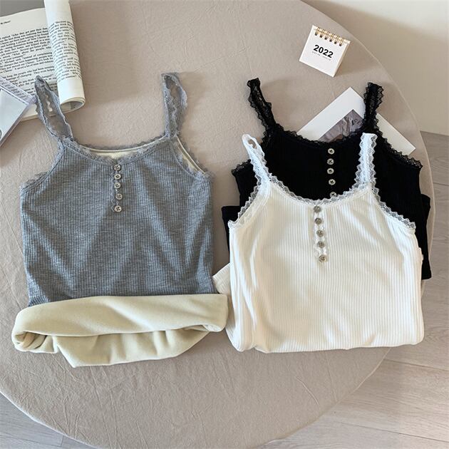 【海外からの取り寄せ】 新作 暖かいインナー キャミ アンダーウェア レースインナー グレー ホワイト レース リブ #[inner216_5800]【送料込み】【250615】