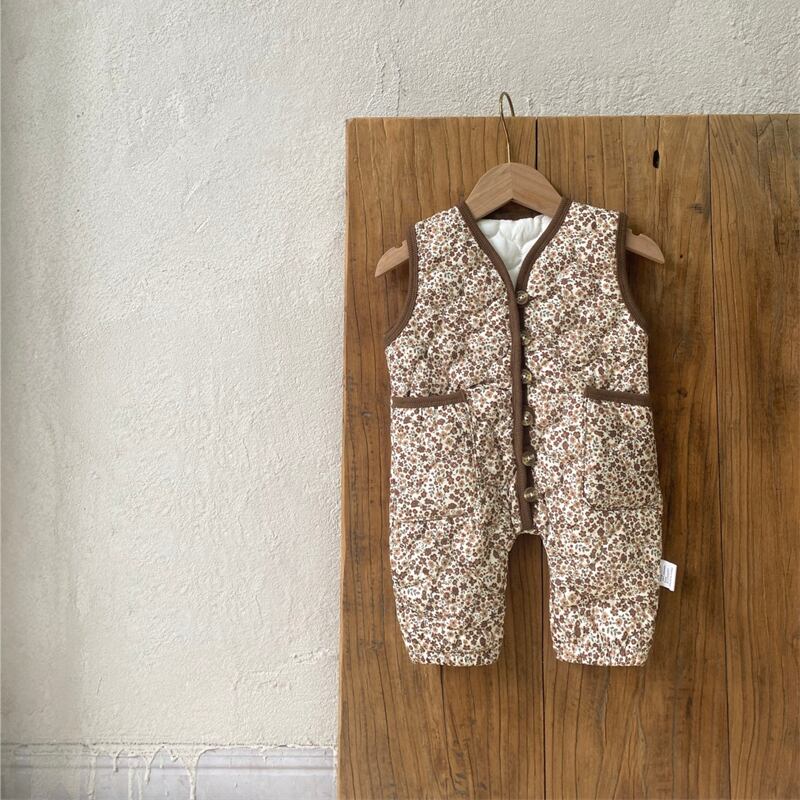 【海外からの取り寄せ】2024秋冬新作 子供服 レトロ キルティング ロンパース 中綿 女の子 花柄 ノースリーブ 可愛い #[ckd1094259_27100]【送料込み】【250509】