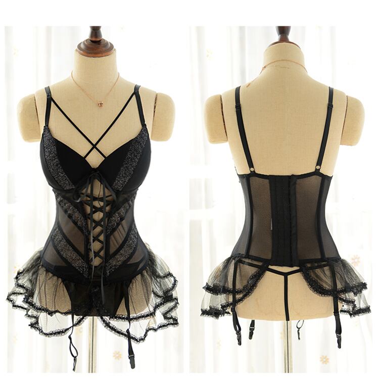 【即日発送】ストッキング付き ガーターベルト付きビスチェとショーツ セクシーランジェリー【 #[7333_18000]】【送料込み】【250914】