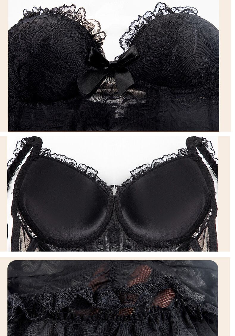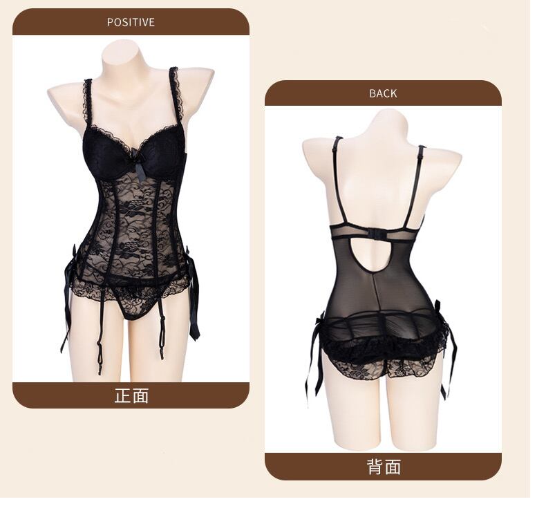 【即日発送】黒色 ガーターベルト付きビスチェとショーツ セクシーランジェリー【 #[7409_18000]】【送料込み】【251111】