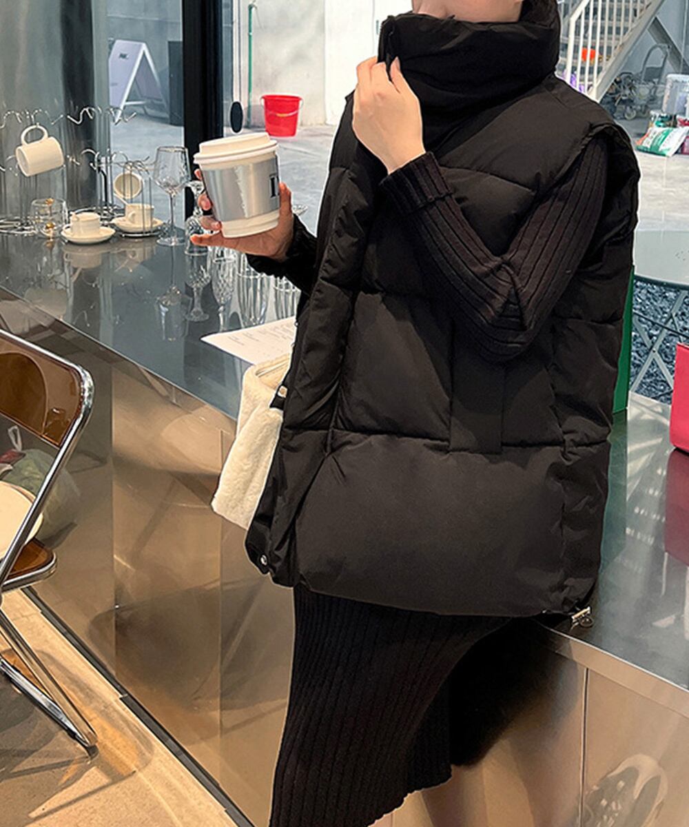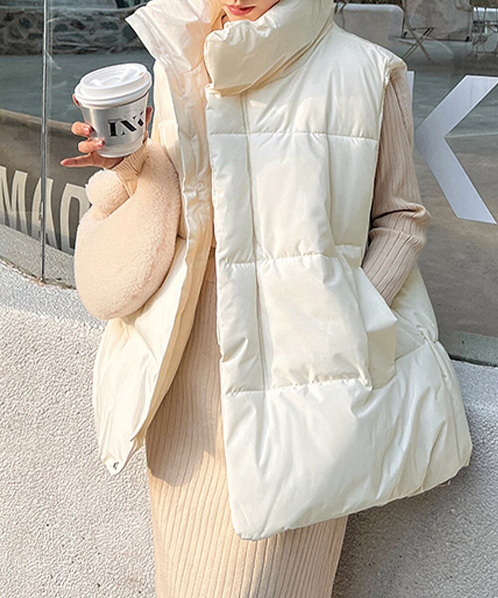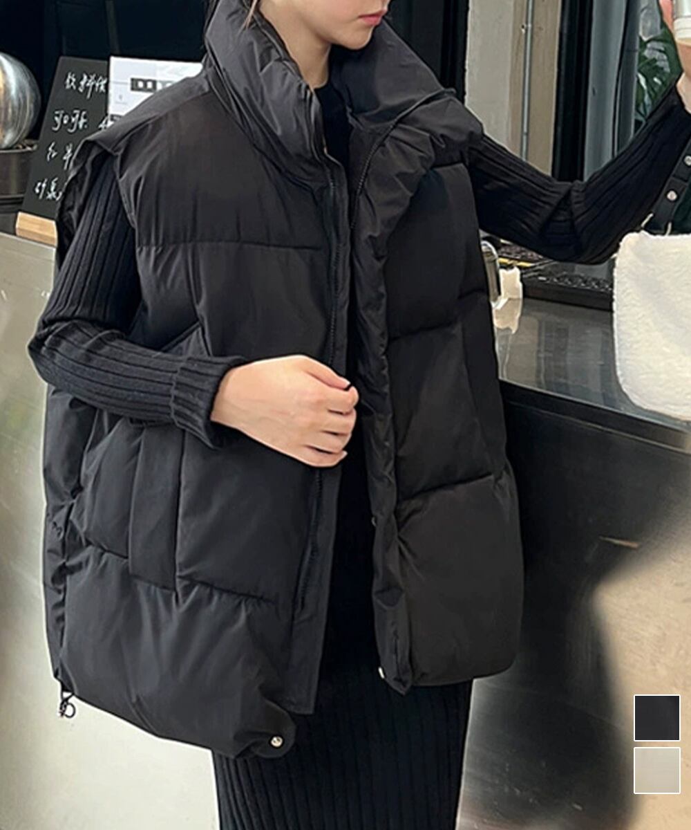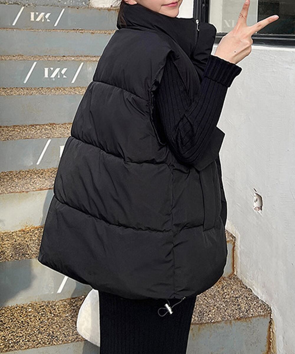 ノースリーブジャケット シンプルジレベスト レイヤード重ね着 上着ジャンパー ゆったり体型カバー 着やせ冬アウター韓国風