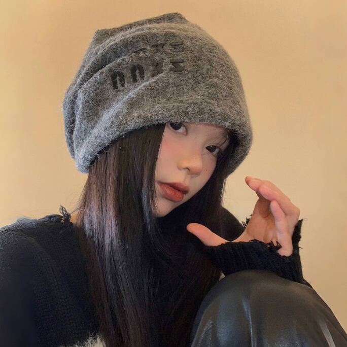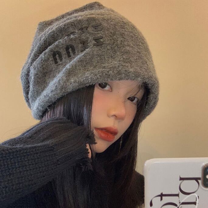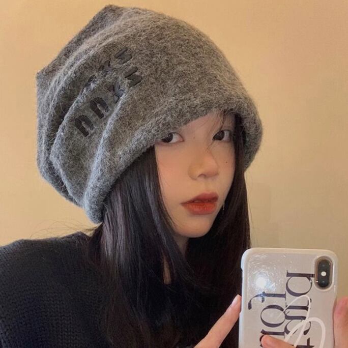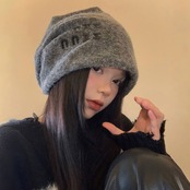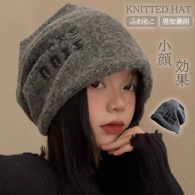 【海外からの取り寄せ】 帽子 ニットキャップ 小顔効果 伸縮 かわいい 防寒 保温 ニット帽 文字入れ ダークグレー #[hat410_11800]【送料込み】【250510】