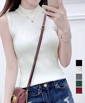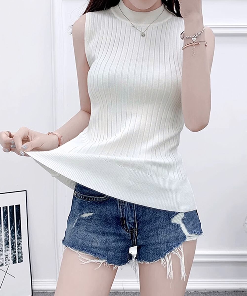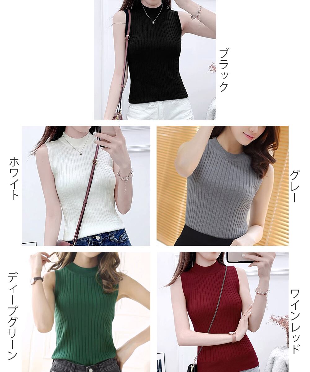 袖なしトップス無地 オフィスカジュアル シンプルニット大人