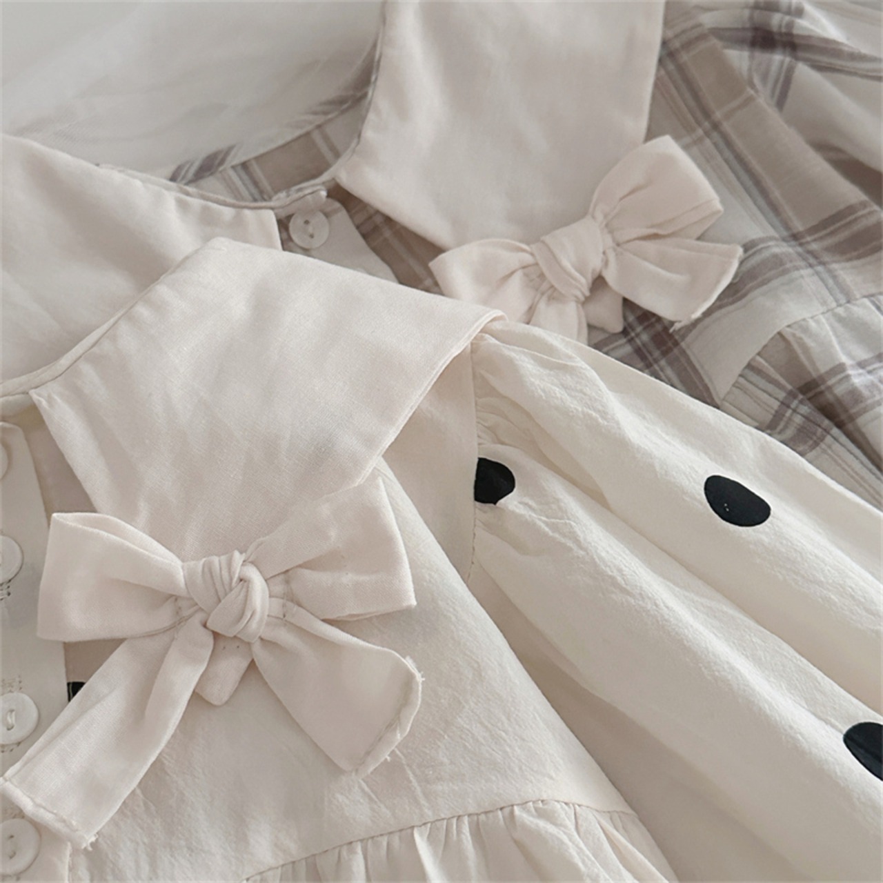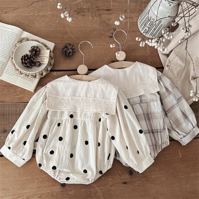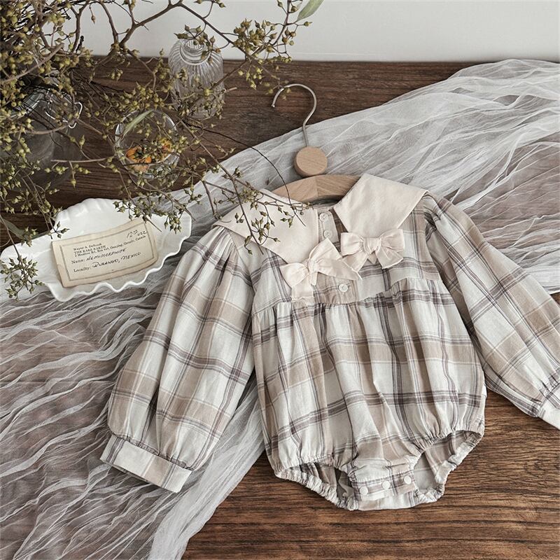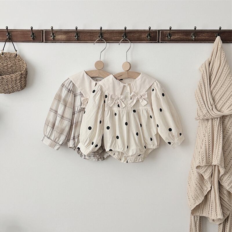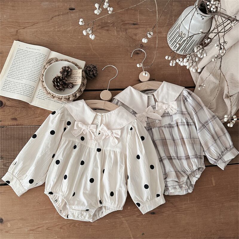 【海外からの取り寄せ】2025秋新作 ベビー服 女の子 水玉 格子 リボン ロンパース 長袖 カバーオール 可愛い 子供服 #[ckd1094282_19100]【送料込み】【250913】