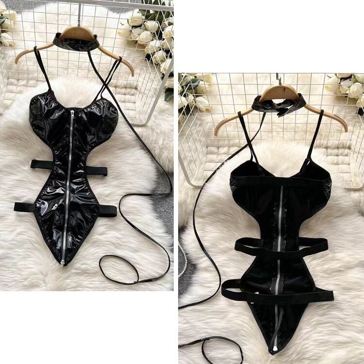 【即納】Tバックタイプ 首リード エナメル風 ボンテージ レオタード コスプレ衣装【 #[4659_18300]】【送料込み】【250921】