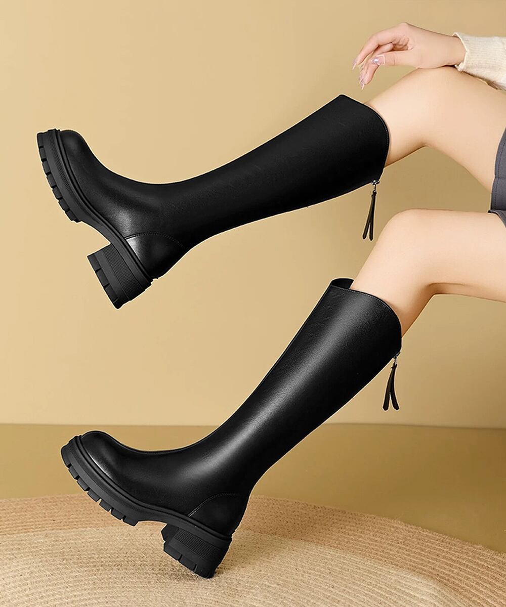 膝下丈ブーツ バックジップジョッキーブーツ 履きやすい おしゃれ美脚脚長ブーツ カジュアル靴 チャンキーヒール 疲れない