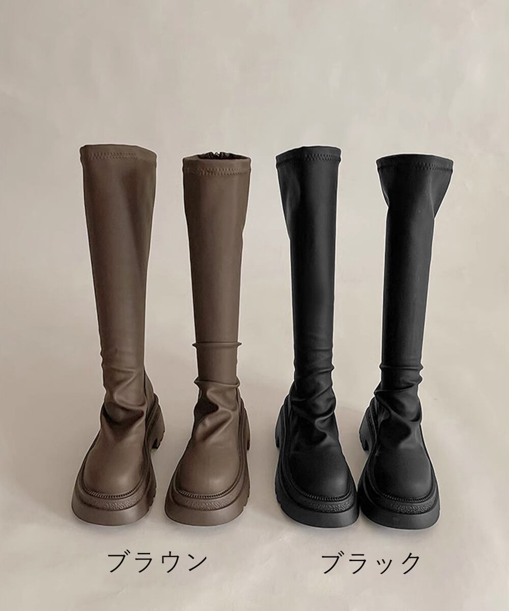 【日本倉庫からの発送】 ロングブーツ 厚底ブーツバックジップ美脚 #[84TONGT-012_34300]【送料込み】【251012】