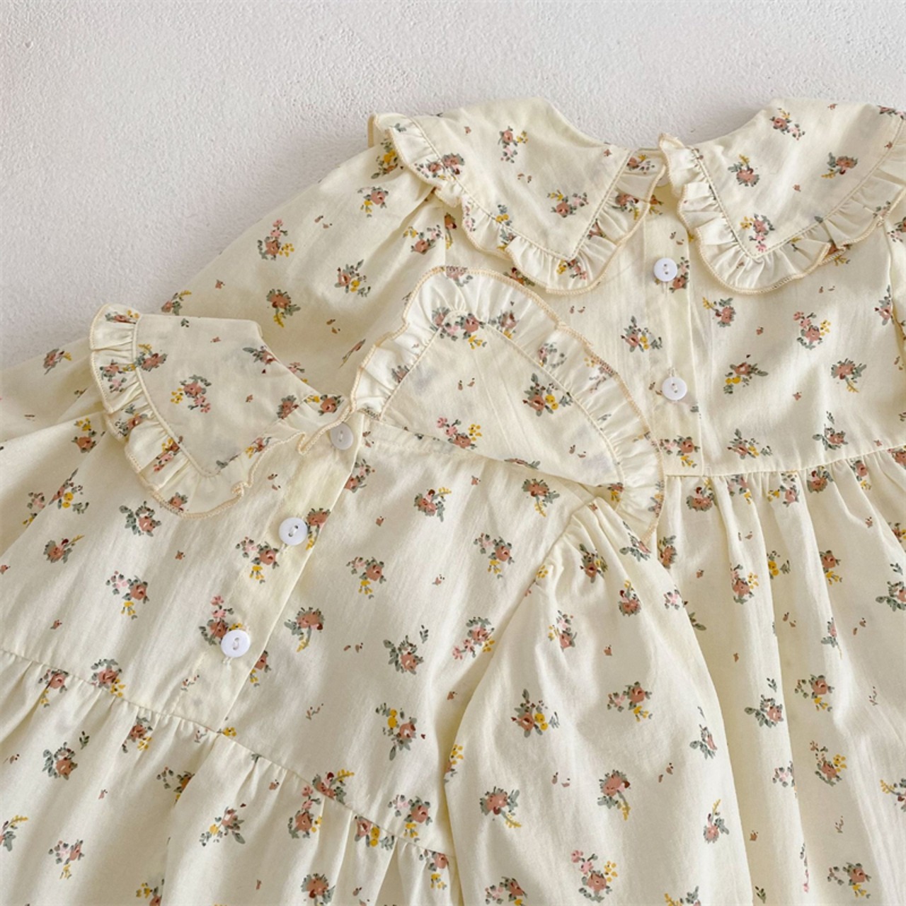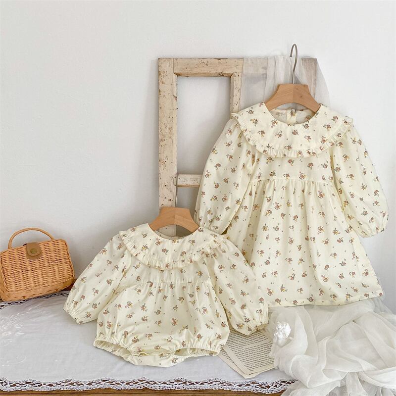 【海外からの取り寄せ】2025秋新作 子供服 姉妹お揃い 選べる2タイプ フリル ラッフルカラー 花柄 ロンパース ワンピース #[ckd1094357_18100]【送料込み】【250913】