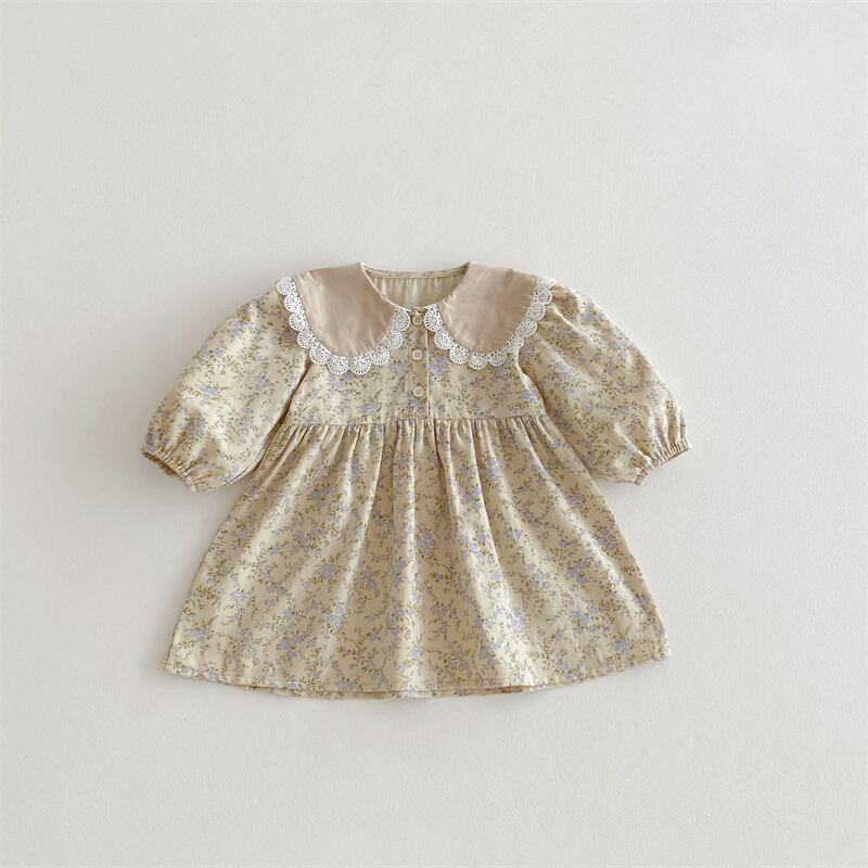 【海外からの取り寄せ】2025春新作 子供服 女の子 レース ピーターパン襟 長袖 花柄 ワンピース 柔らか 可愛い おしゃれ #[ckd1094348_18000]【送料込み】【250525】