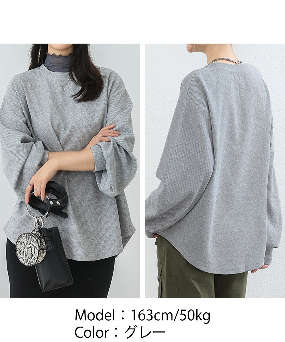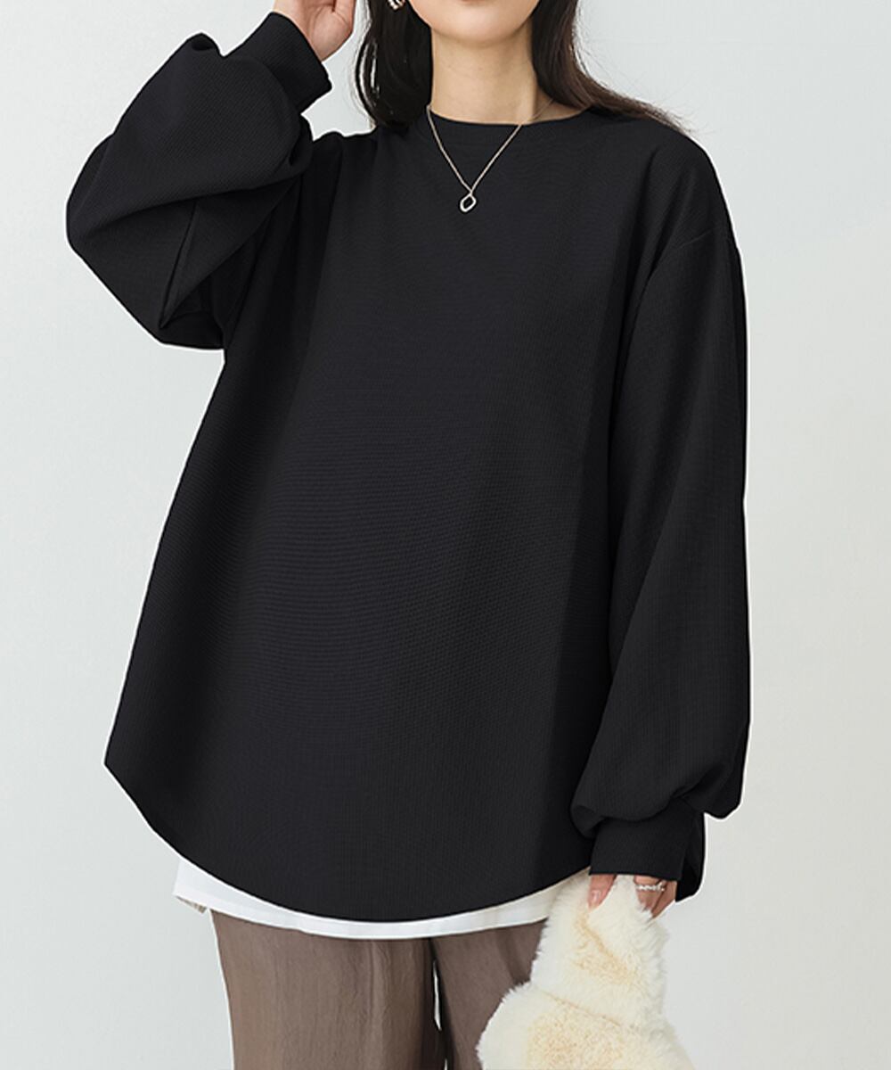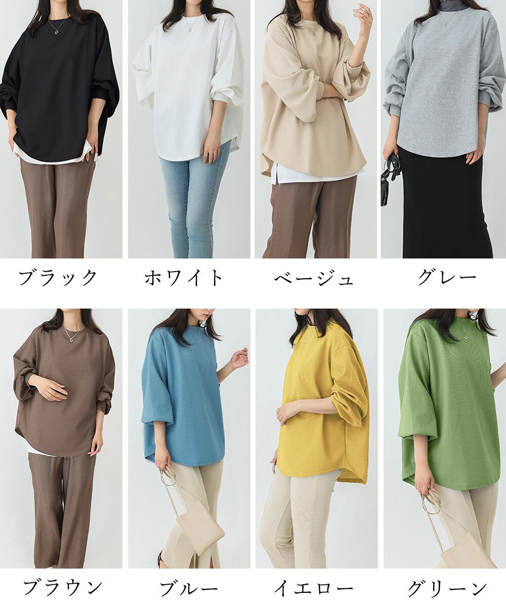 パフスリーブ 無地 トップス おしゃれ長袖プルオーバー 体型カバーカットソー ゆったり春秋服オルチャン ワッフル生地