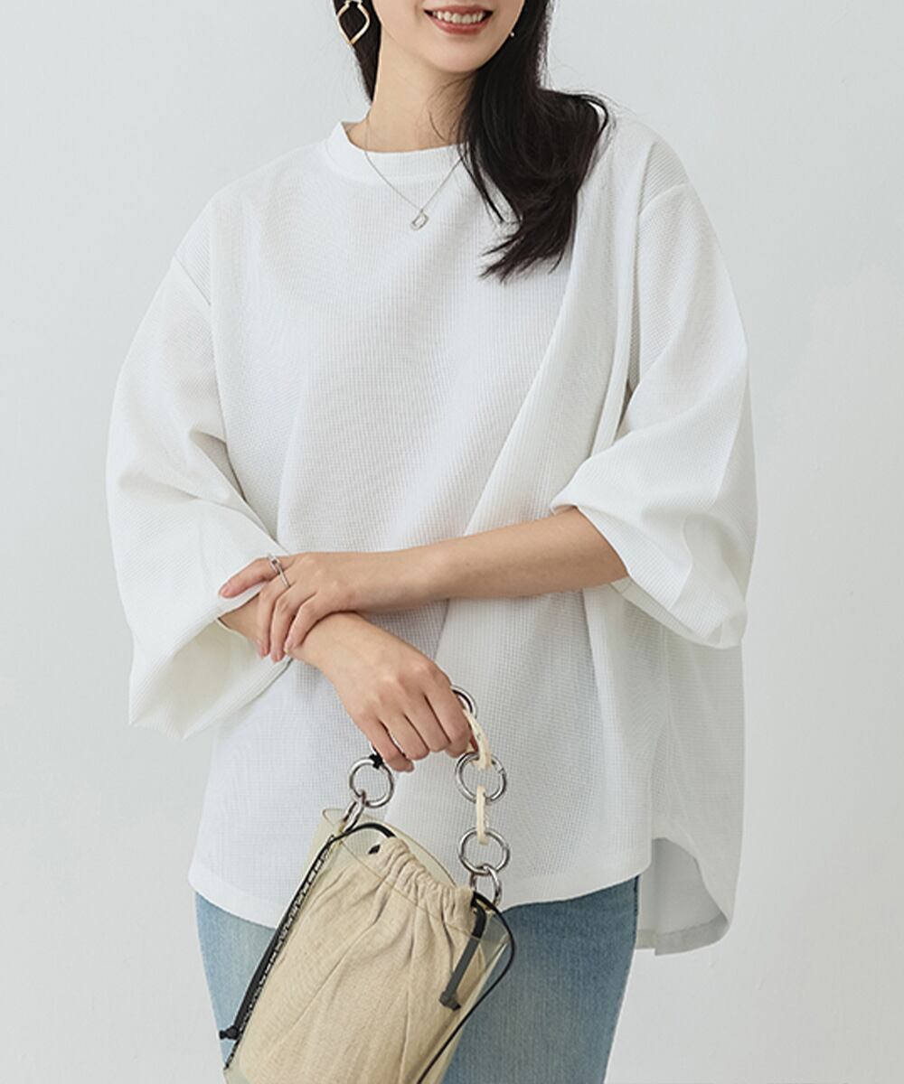 ゆったりとしたシルエットで体型をさりげなくカバーし、気になる腰まわりも自然に隠してくれます