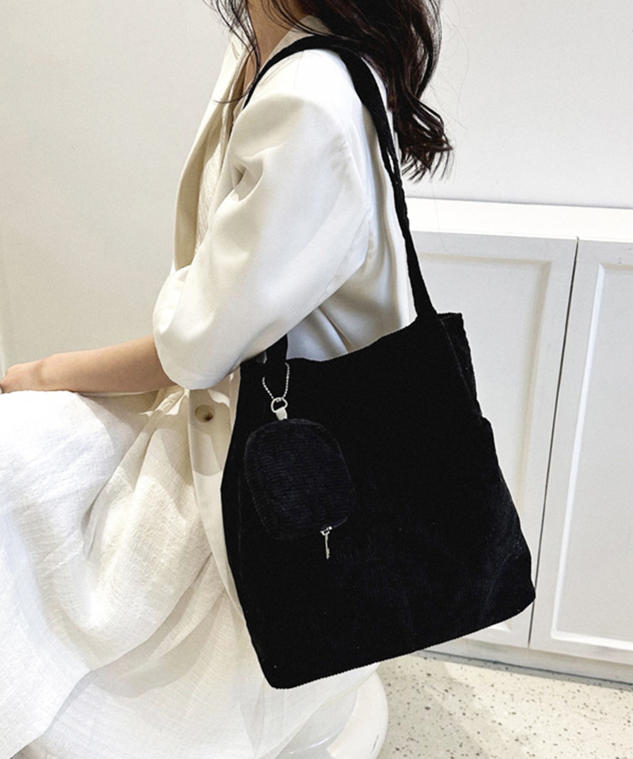 【日本倉庫からの発送】 ポーチ付きコーデュロイトートバッグ大容量 #[84HBJP-005_14100]【送料込み】【250917】