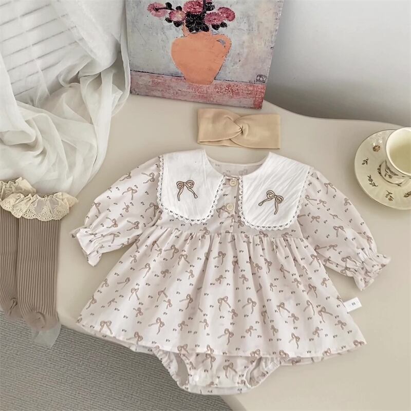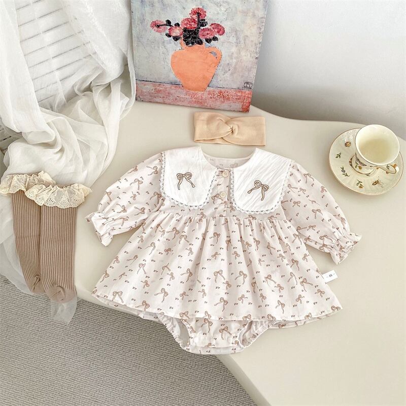 【海外からの取り寄せ】2025秋新作 ベビー服 女の子 大きな襟 長袖 ロンパース 柔らか 子供服 可愛い 刺繍 リボン花柄 #[ckd1094371_18600]【送料込み】【250913】