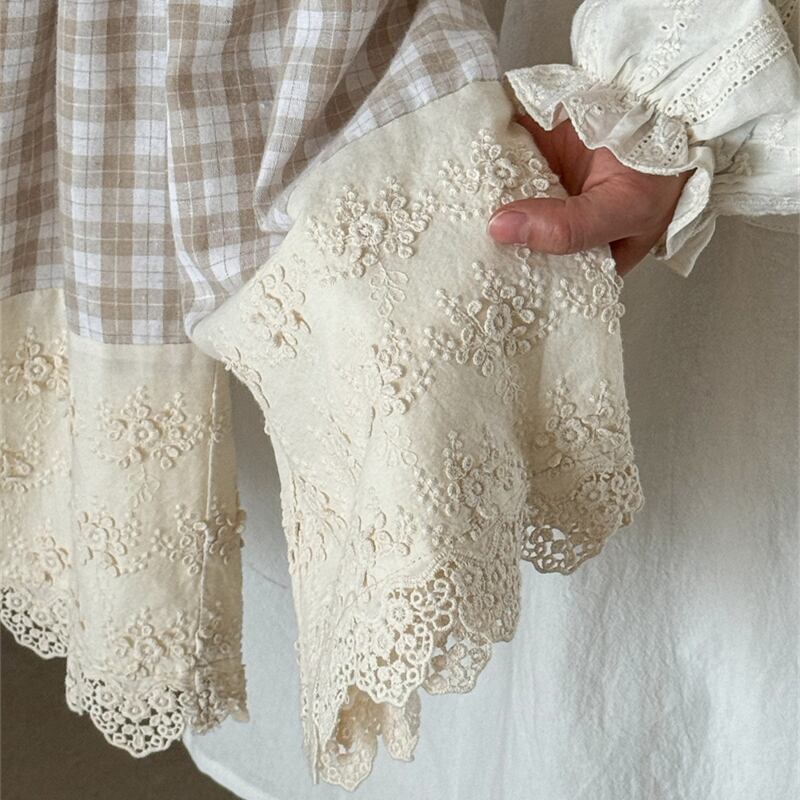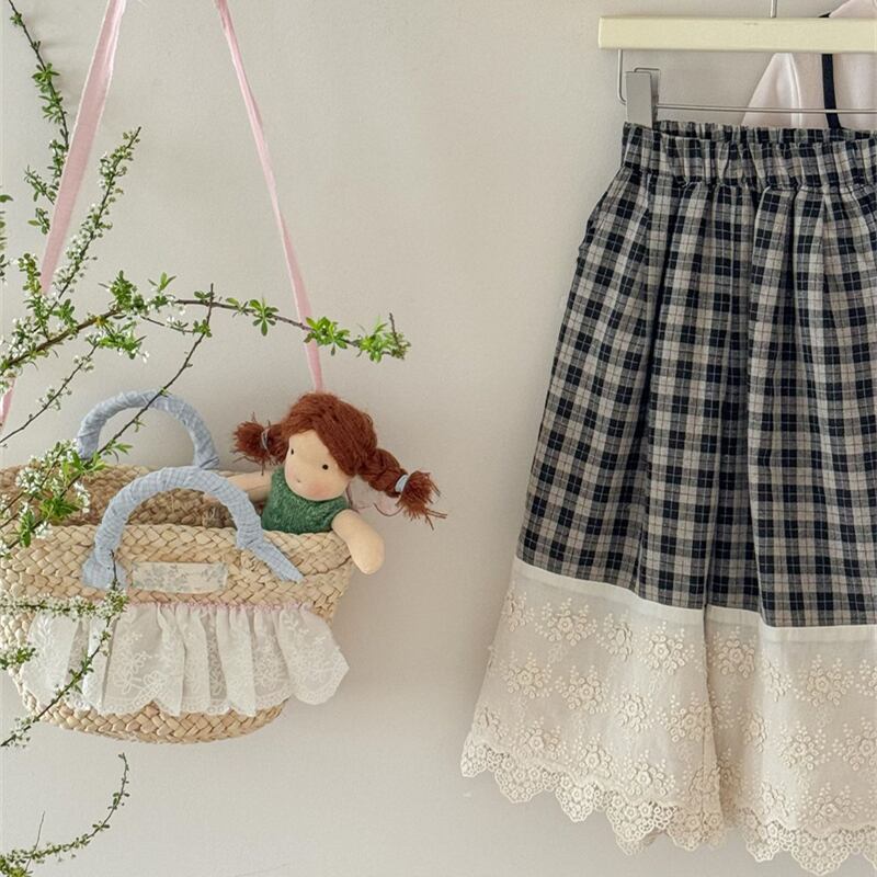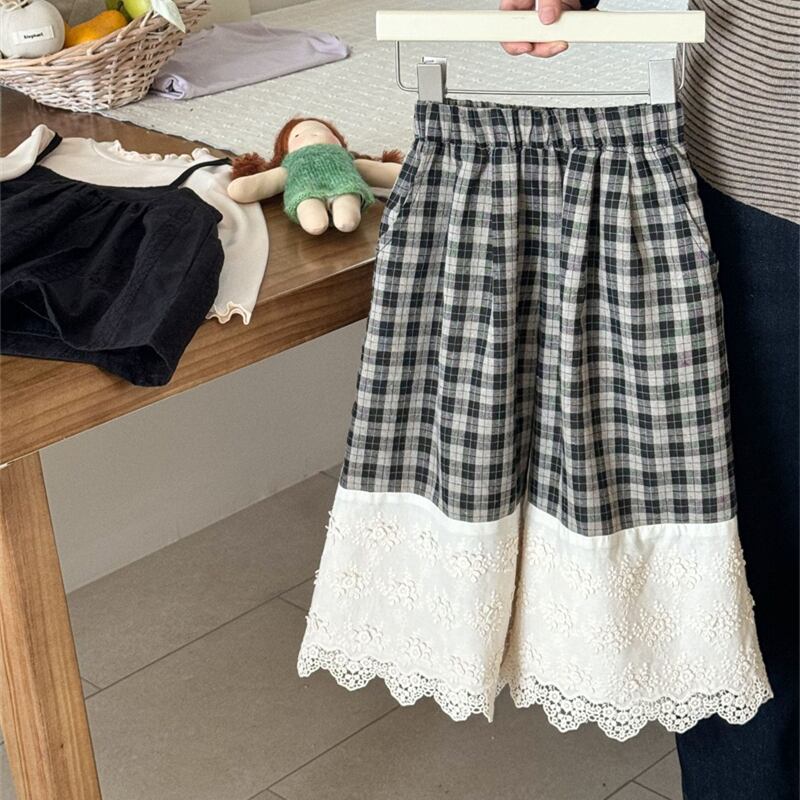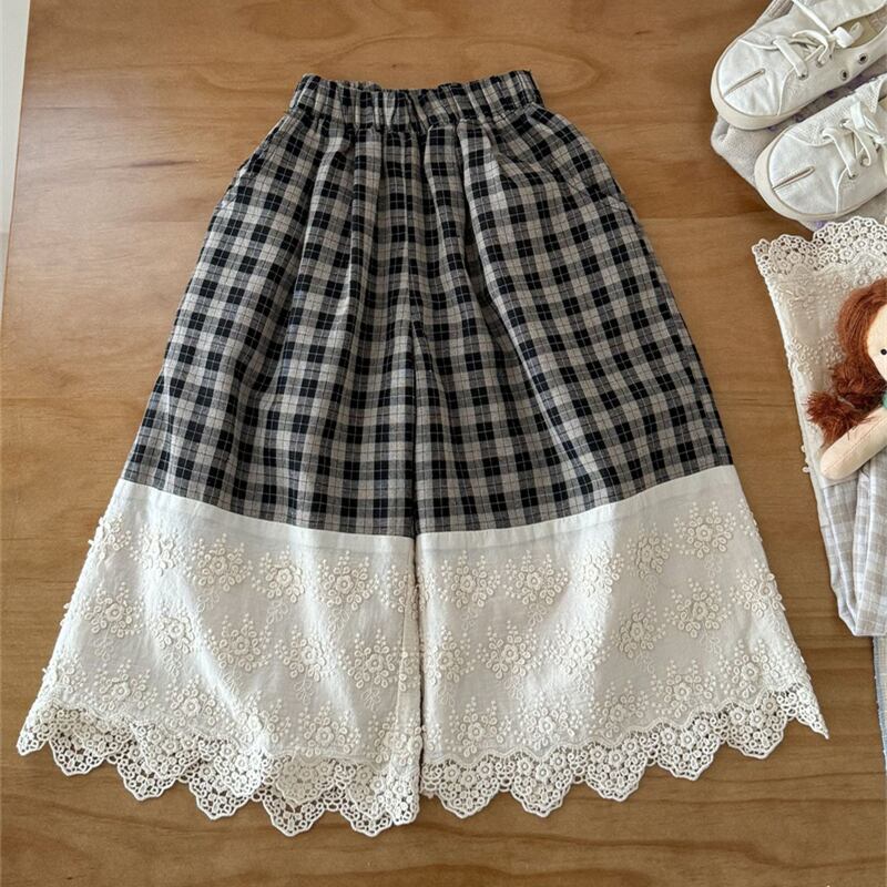 【海外からの取り寄せ】2025秋新作 女の子 レースドッキング ワイドパンツ 格子柄 子供服 カジュアル ボトムス ペチコート #[ckd1094367_17500]【送料込み】【250913】