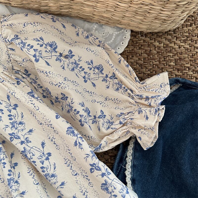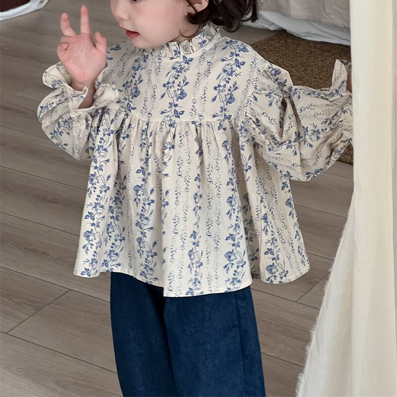 【海外からの取り寄せ】ins 秋新作 子供服 女の子 立ち襟 長袖 花柄 ブラウス トップス 可愛い 森ガール おしゃれ #[ckd1094366_16900]【送料込み】【250704】