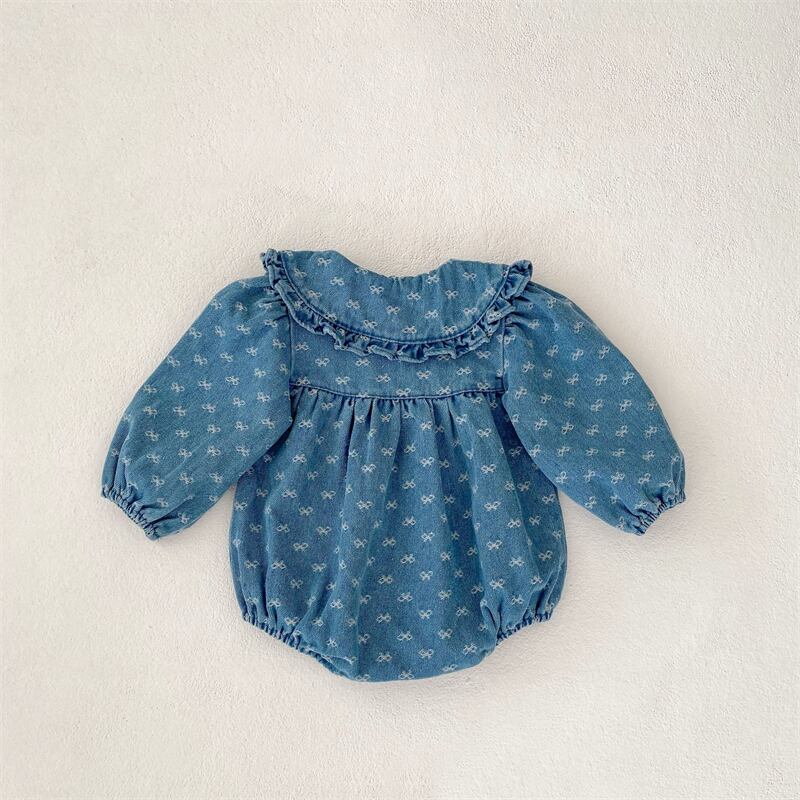 【海外からの取り寄せ】2025春新作 子供服 姉妹服 選べる2タイプ デニム 長袖 リボン柄 ロンパース ワンピース 可愛い #[ckd1094384_21700]【送料込み】【250524】