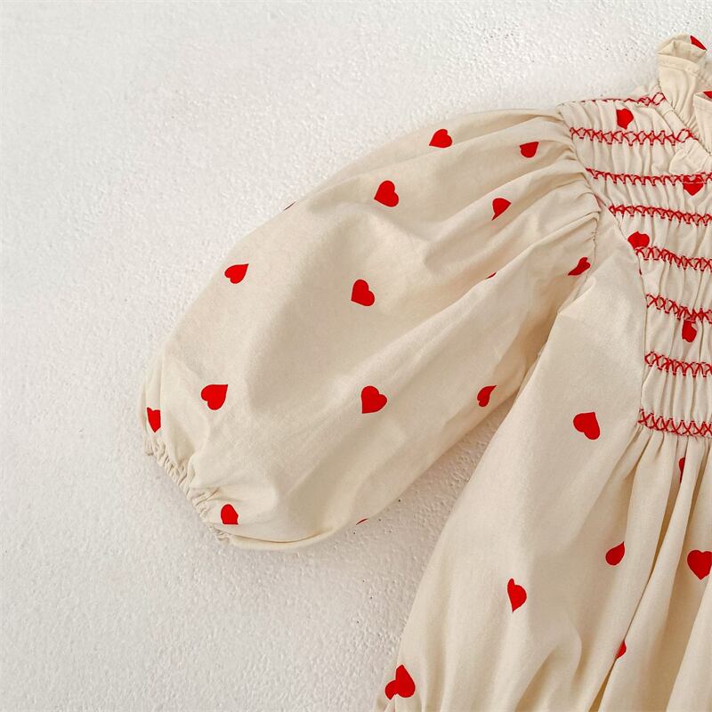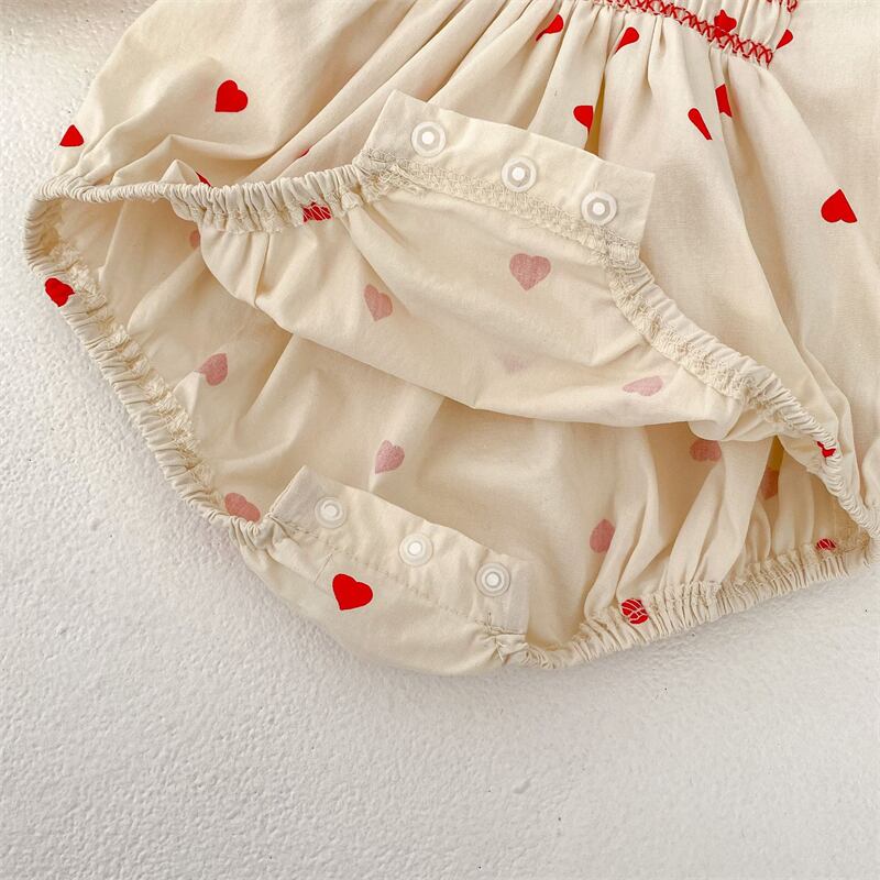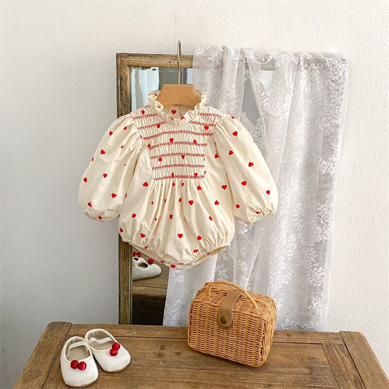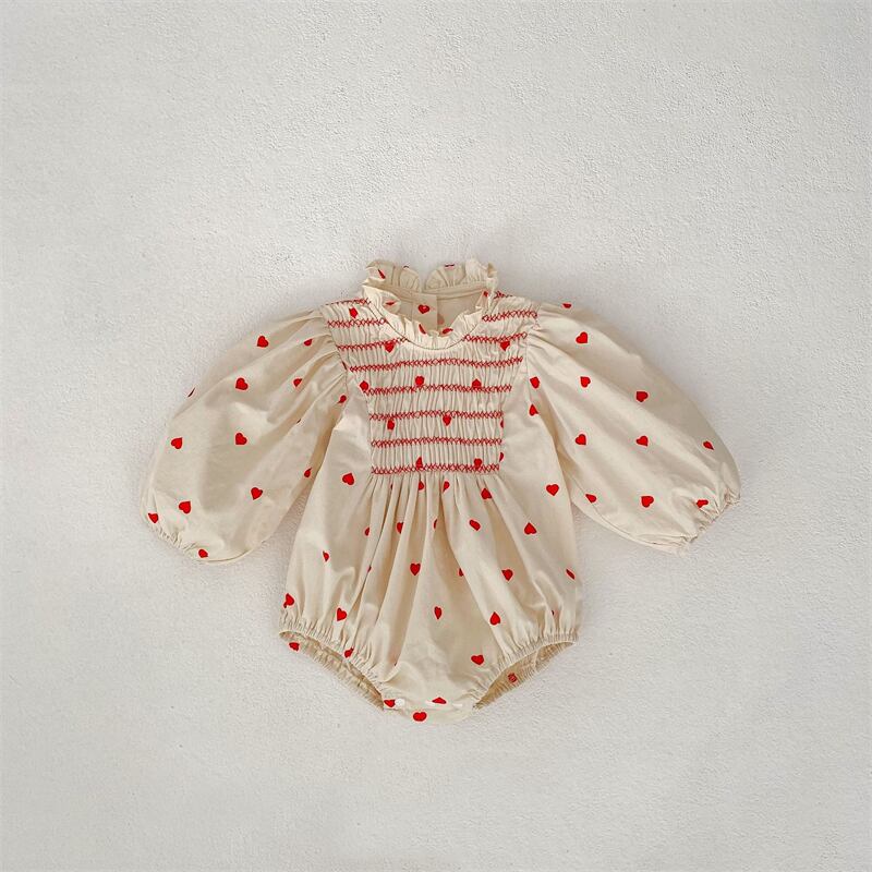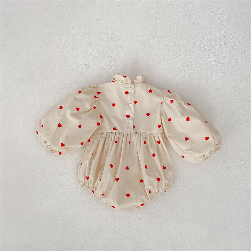 【海外からの取り寄せ】2025秋新作 ベビー服 女の子 立ち襟 ハート柄 パフスリーブ ロンパース 柔らか 可愛い 子供服 #[ckd1094383_20500]【送料込み】【250727】