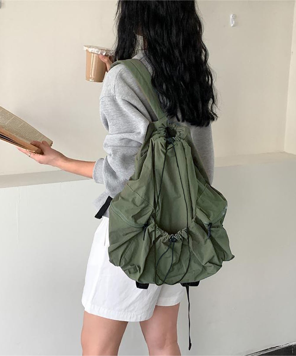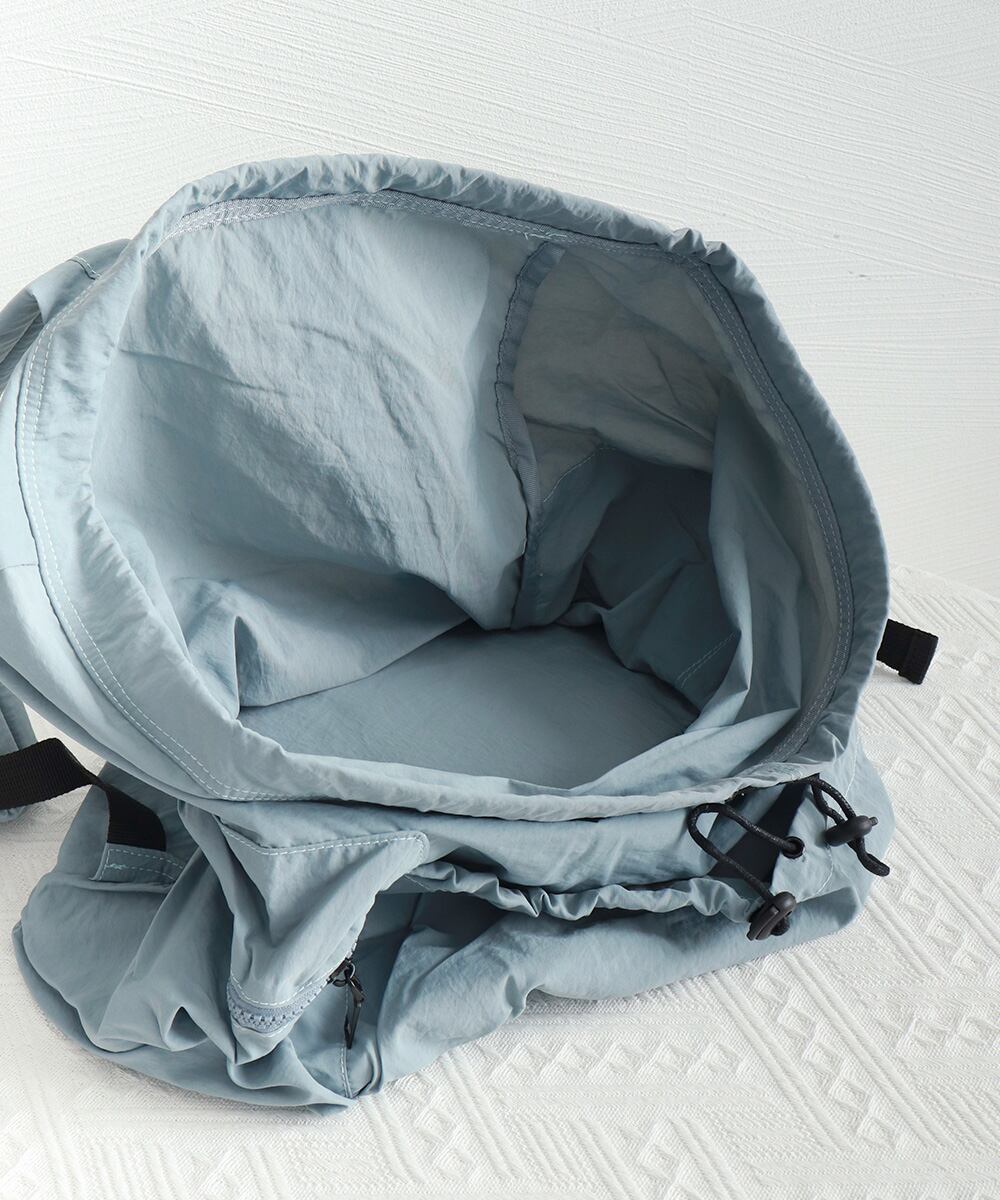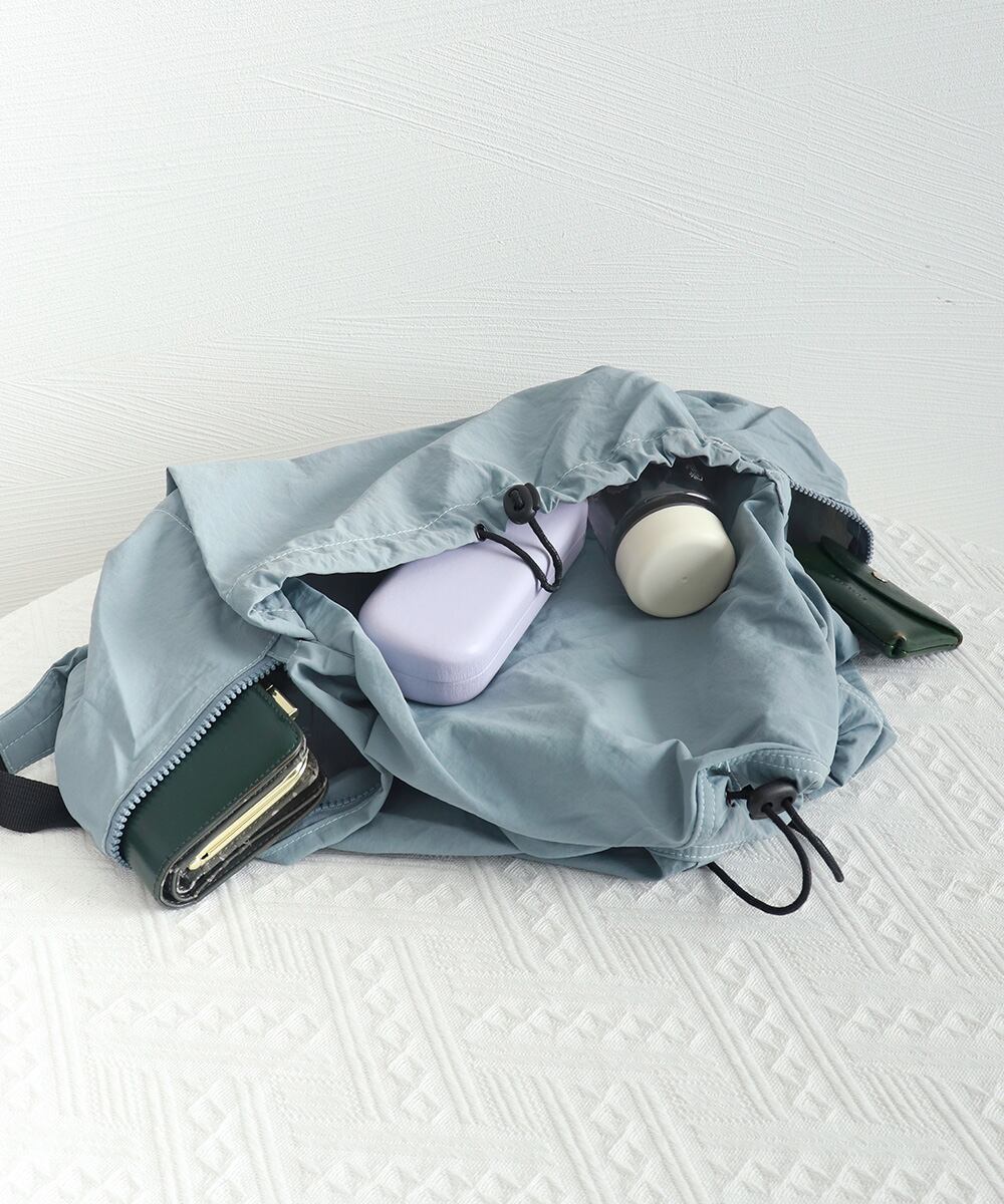 開口部はドローストリング仕様で、大きく開けられるため、物の出し入れがスムーズ