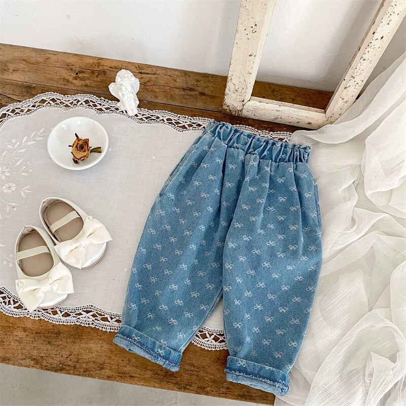 【海外からの取り寄せ】2025春新作 子供服 リボン柄 デニムパンツ カジュアル ボトムス ズボン ジーンズ おしゃれ 女の子 #[ckd1094386_16400]【送料込み】【250524】