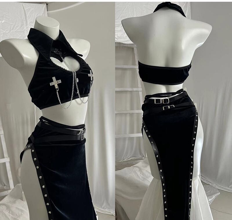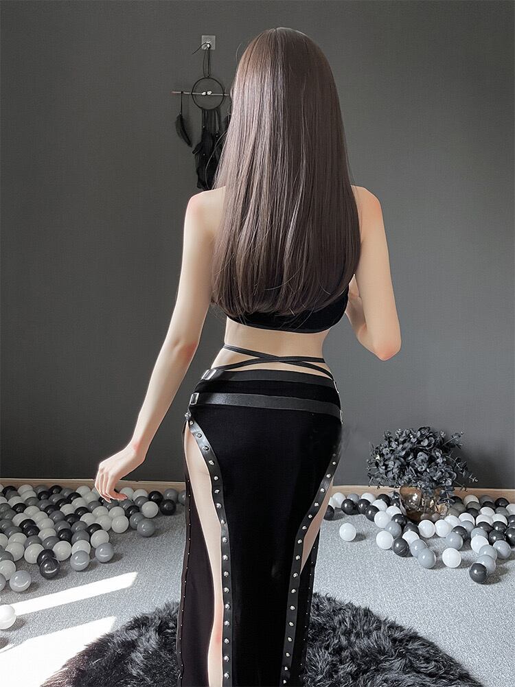 セット内容:トップ、ロングスカート、Tバック、チェーン