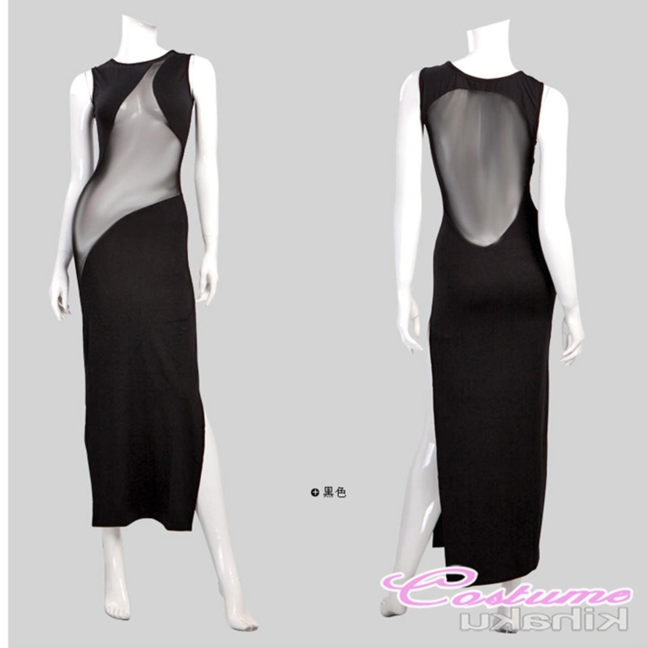 袖なし 黒 ブラック ロング丈ドレス ボディコン【 #[8587_14000]】【送料込み】【250920】