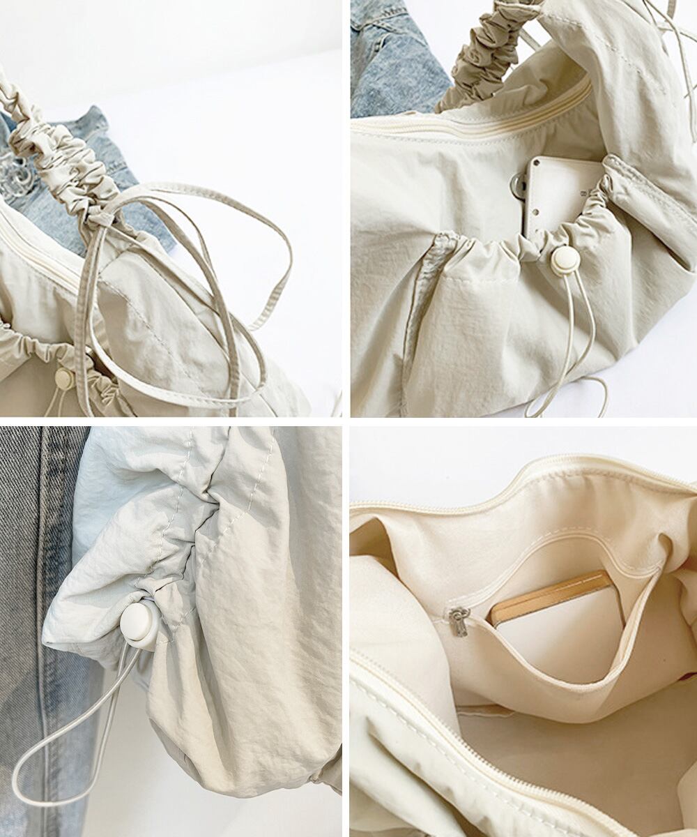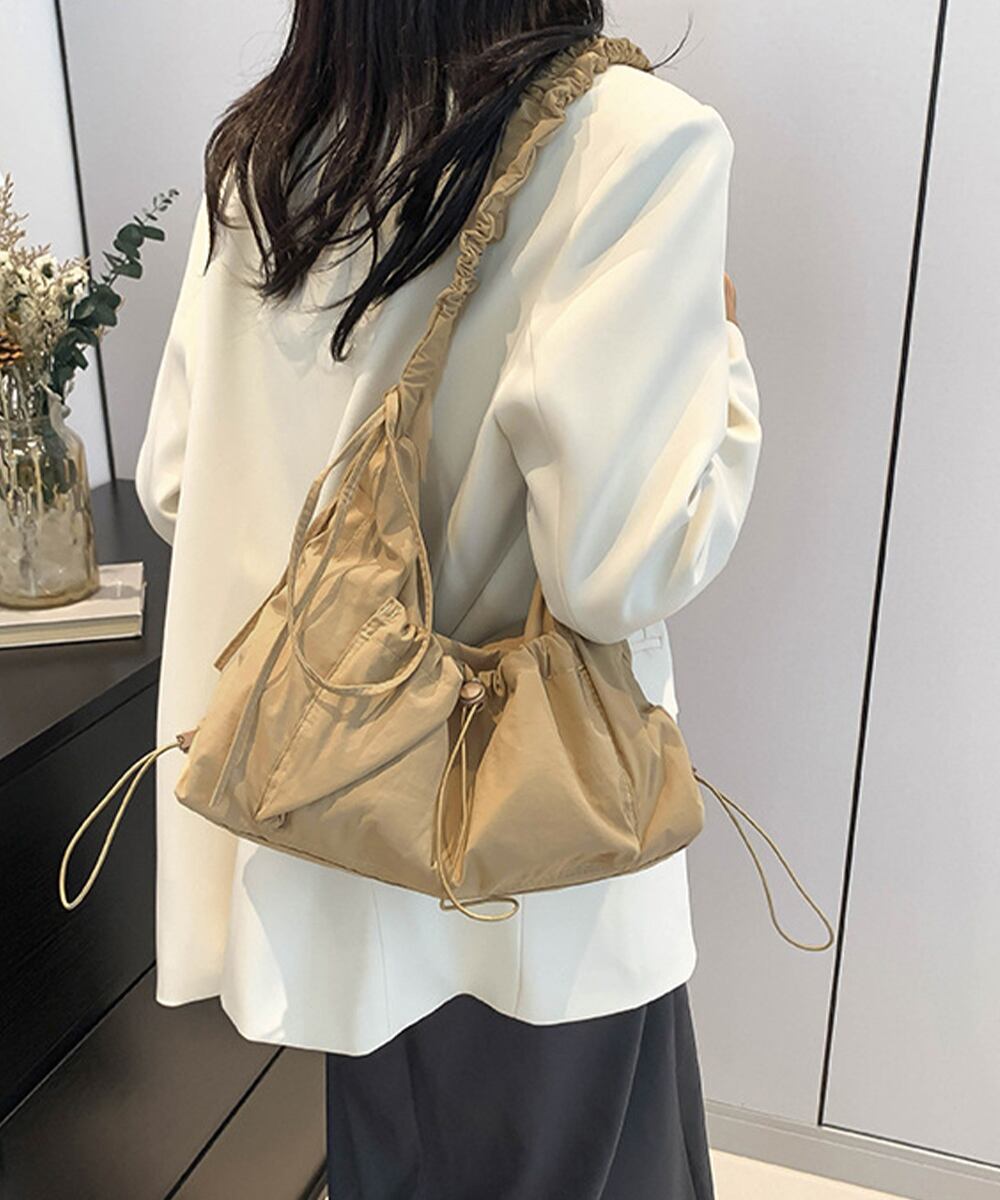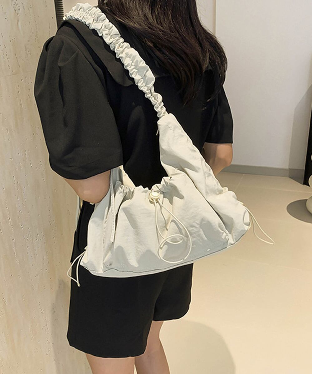 ストリングギャザー ワンショルダー鞄春 無地軽いバッグ旅行