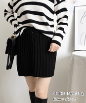 ウエスト部分に小さなリボンが付いたミニプリーツスカート