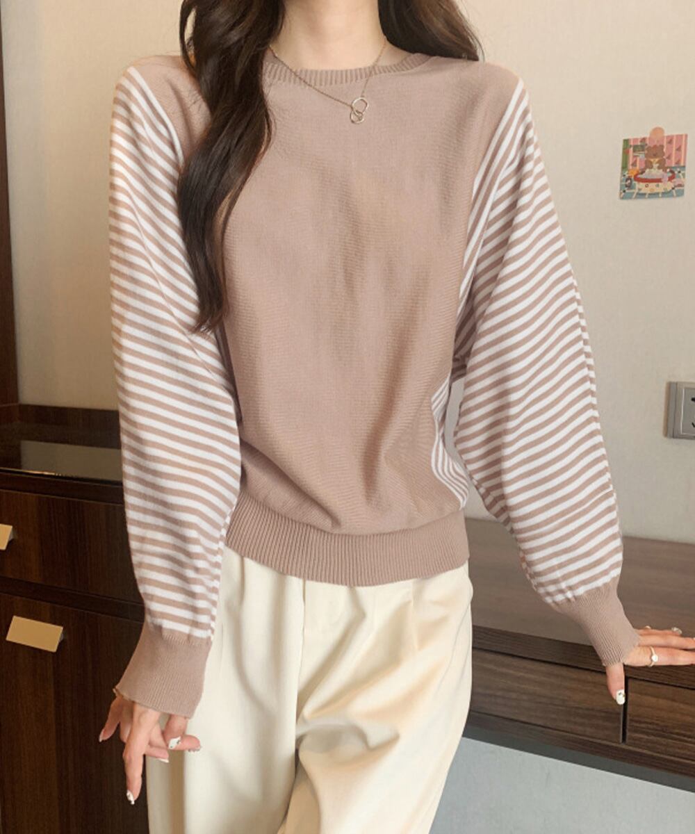 【日本倉庫からの発送】 ストライプ配色ドルマンニット体型カバー春 #[89TOPS-002_21600]【送料込み】【251010】