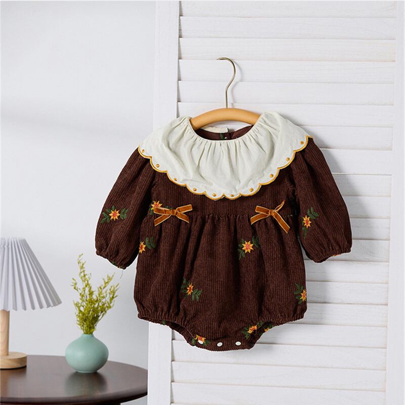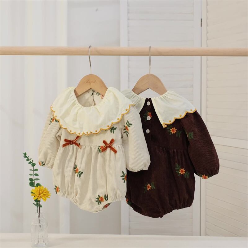 【海外からの取り寄せ】2025秋新作 ベビー服 女の子 刺繍花柄 リボン付き 長袖 ロンパース 可愛い カバーオール 子供服 #[ckd1094400_17300]【送料込み】【250918】